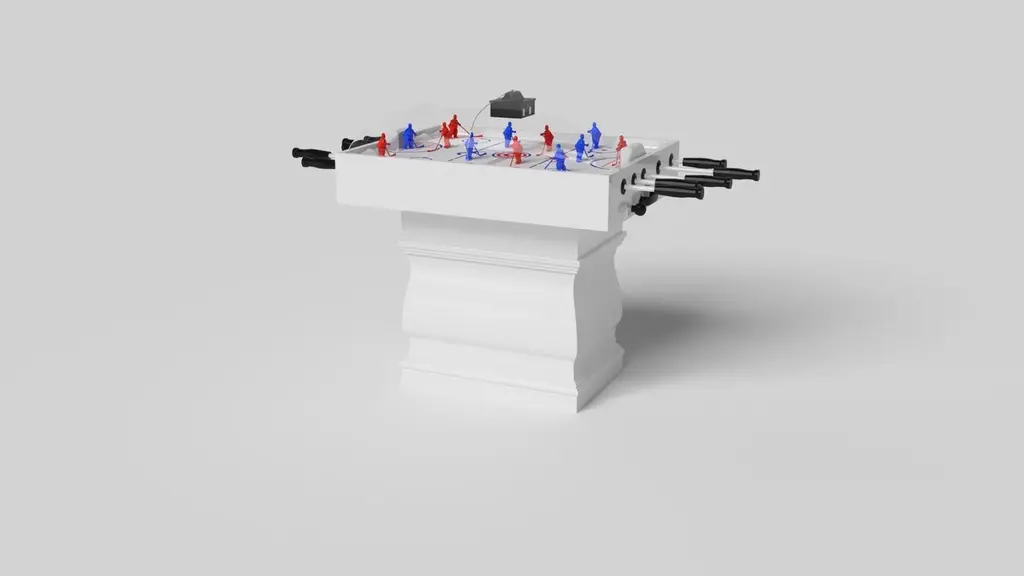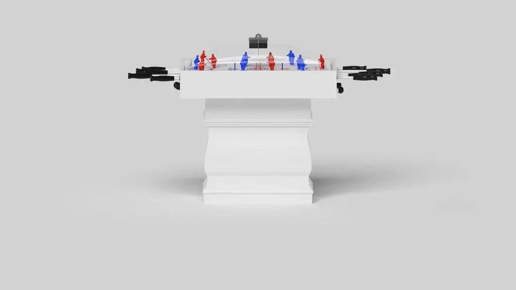 A single hand-sculpted leg bestows a sense of classic style upon this handcrafted dome hockey table in white. This luxury wood game table features a smooth rectangular top perched upon two wide baluster column legs that mimic the curves and lines of crown molding. It’s a sophisticated option designed for superior playability – and it’s an easy addition to any room decorated with classic, traditional, or transitional decor. This table can be customized in your choice of bespoke sizes, colors, and finishes.Size:45”X34”X47”
