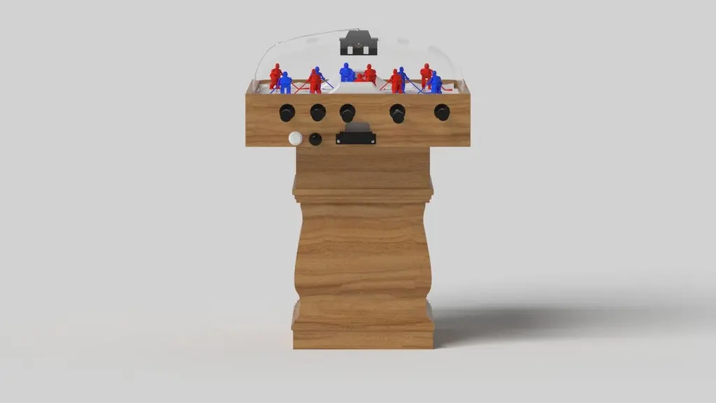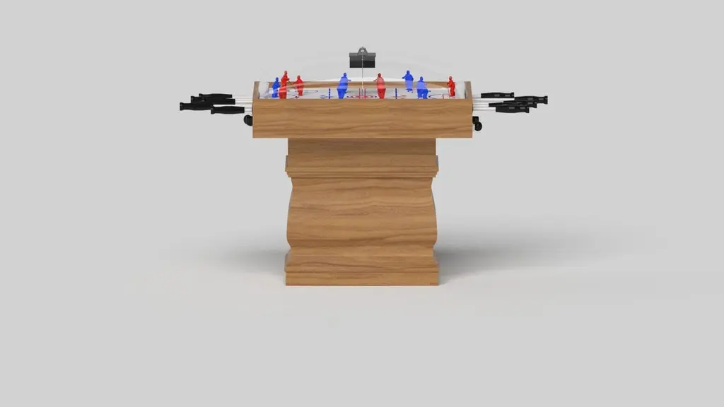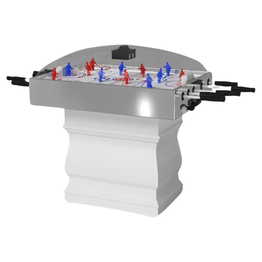 A single hand-sculpted leg bestows a sense of classic style upon this handcrafted dome hockey table in white. This luxury wood game table features a smooth rectangular top perched upon two wide baluster column legs that mimic the curves and lines of crown molding. It’s a sophisticated option designed for superior playability – and it’s an easy addition to any room decorated with classic, traditional, or transitional decor. This table can be customized in your choice of bespoke sizes, colors, and finishes.Size:45”X34”X47”