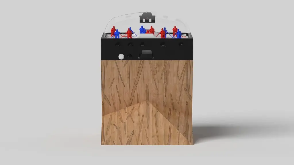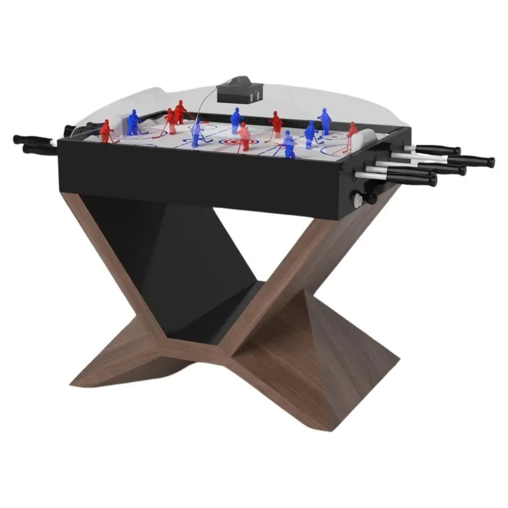 In chrome, the Kors dome hockey table is a superior example of contrasting geometric forms. This table features an angular base that highlights the beauty of negative space from the front view. From the side view, it offers a completely different perspective with unexpected dimensional details that demand attention. The end result is a clean, modern design that offers equal parts style, sophistication, and superior playability.Size:45”X34”X47”