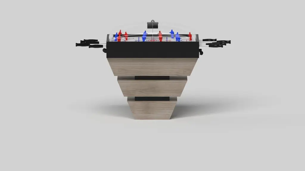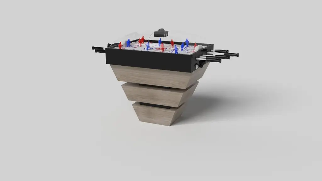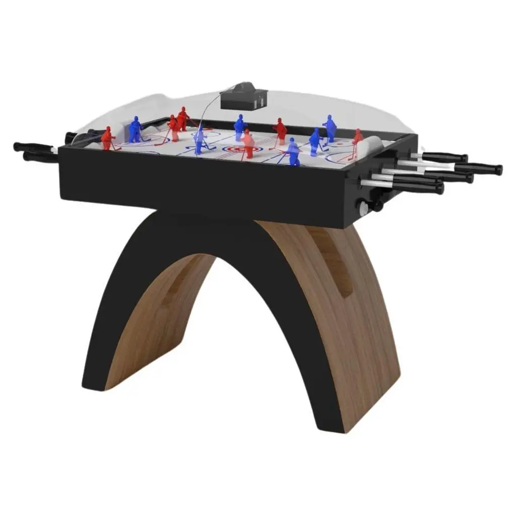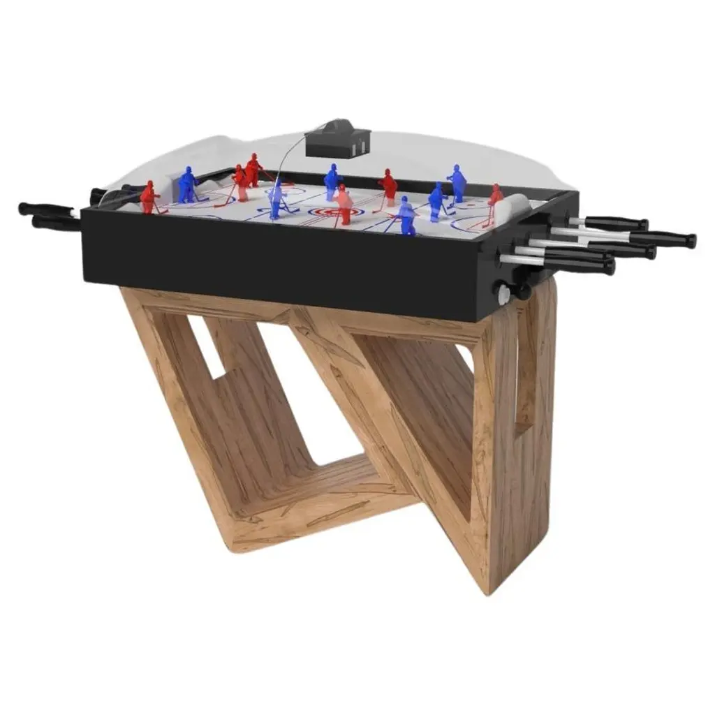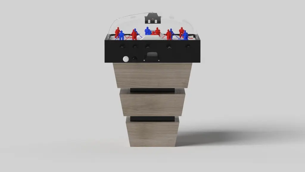 Three solid pieces of wood seemingly float around a concealed center base, making the Louve dome hockey table in chrome one of our most mind-bending designs. This contemporary game table features a smooth hand-sanded finish with a tapered base that creates a timeless pyramidal form.Size:45”X34”X47”
