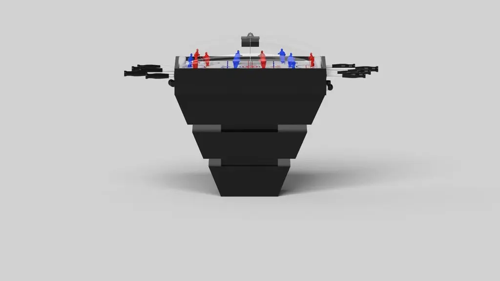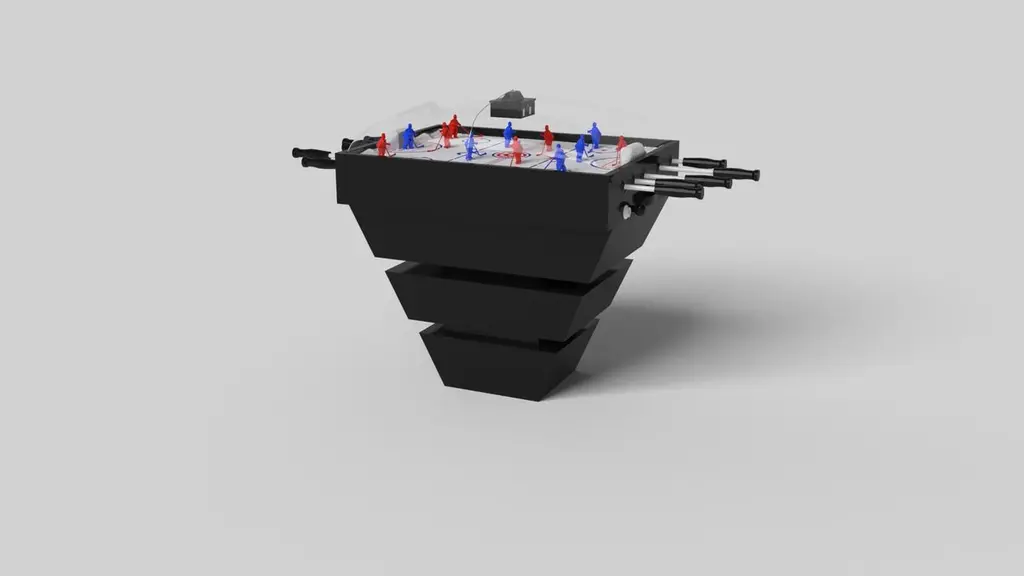 Three solid pieces of wood seemingly float around a concealed center base, making the Louve dome hockey table in chrome one of our most mind-bending designs. This contemporary game table features a smooth hand-sanded finish with a tapered base that creates a timeless pyramidal form.Size:45”X34”X47”