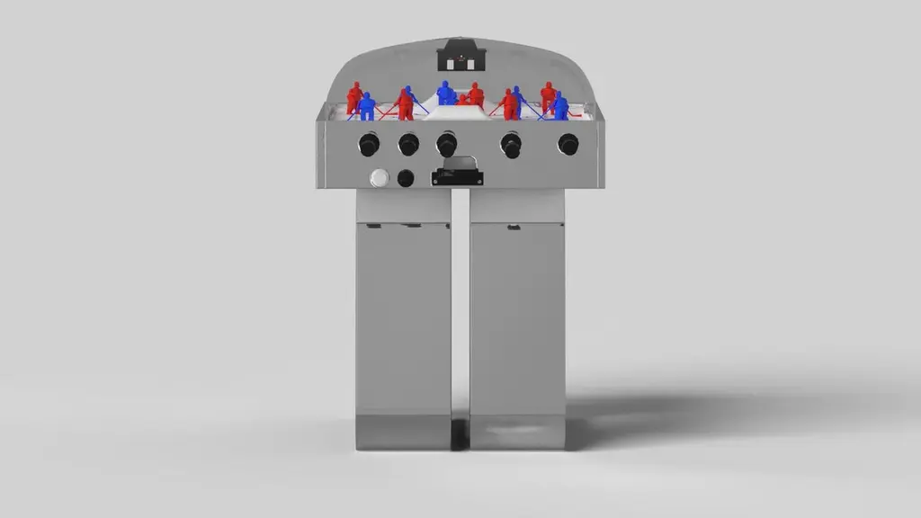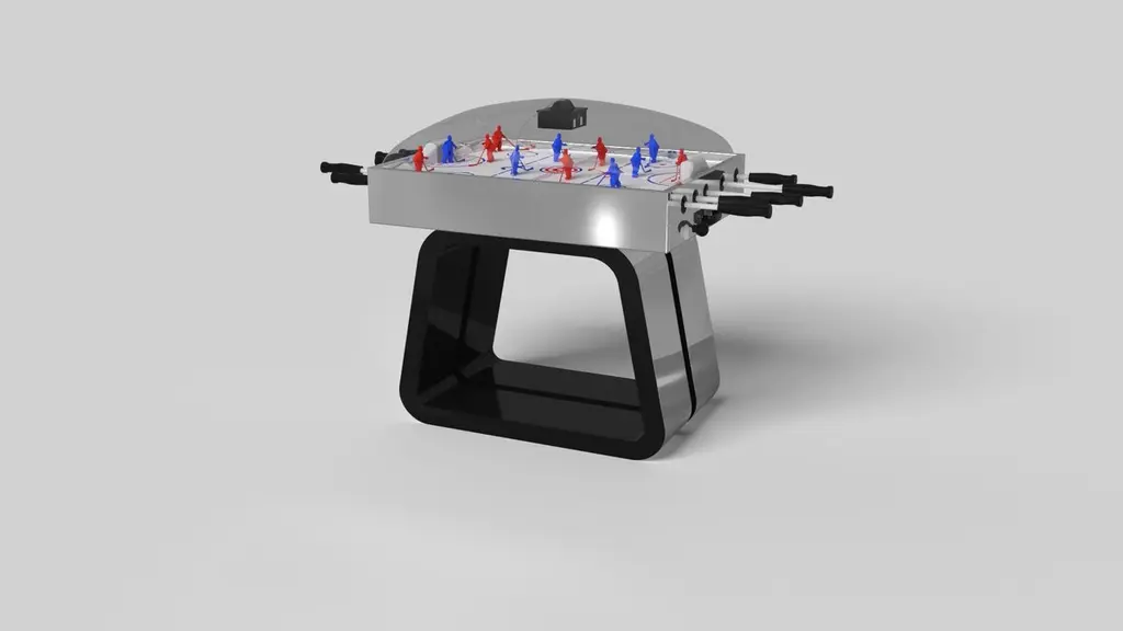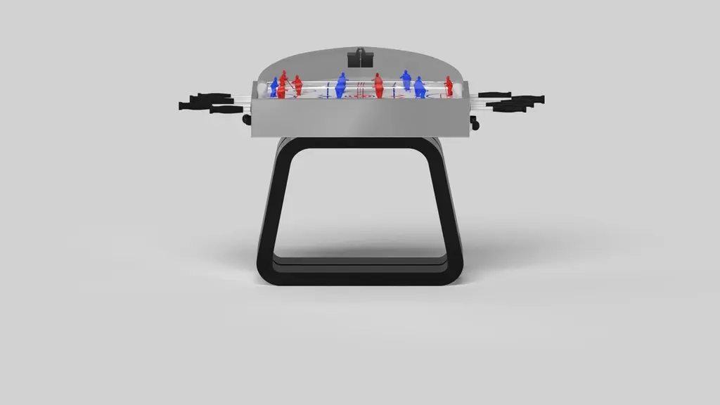 An open base with sweeping curves and smooth edges imparts a light, airy feel upon the Luge dome hockey table in walnut. Evoking a sense of speed and the spirit of continuous movement, this exclusive game table features a split base with open sides and a classic rectangular table top that counterbalances the infinite curvature of the rounded base.Size:45”X34”X47”
