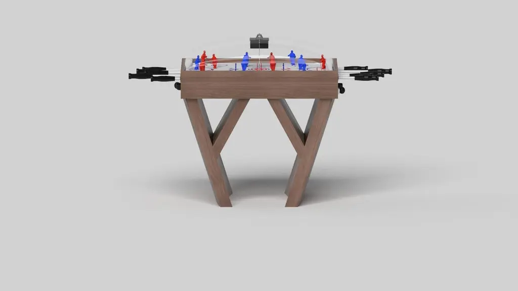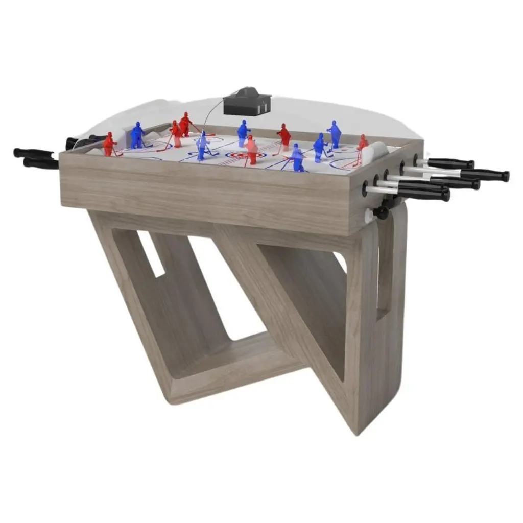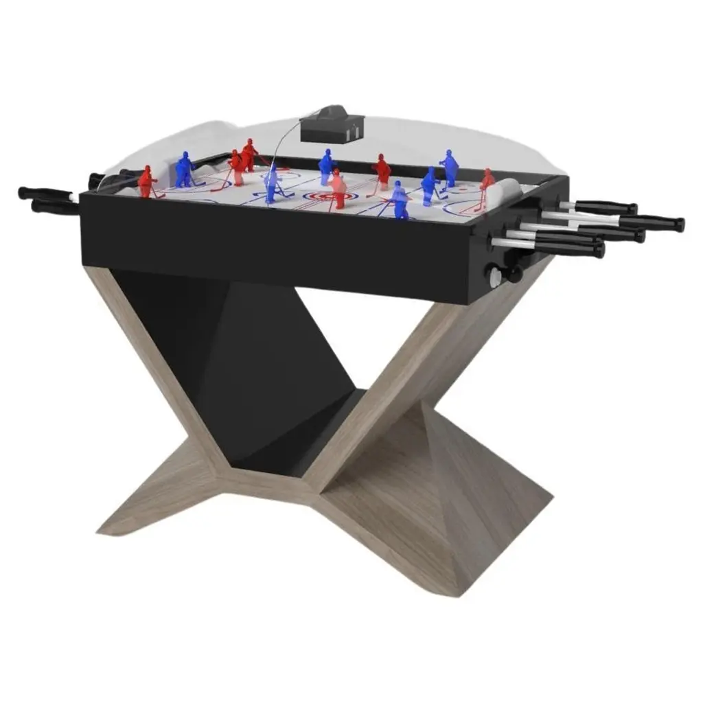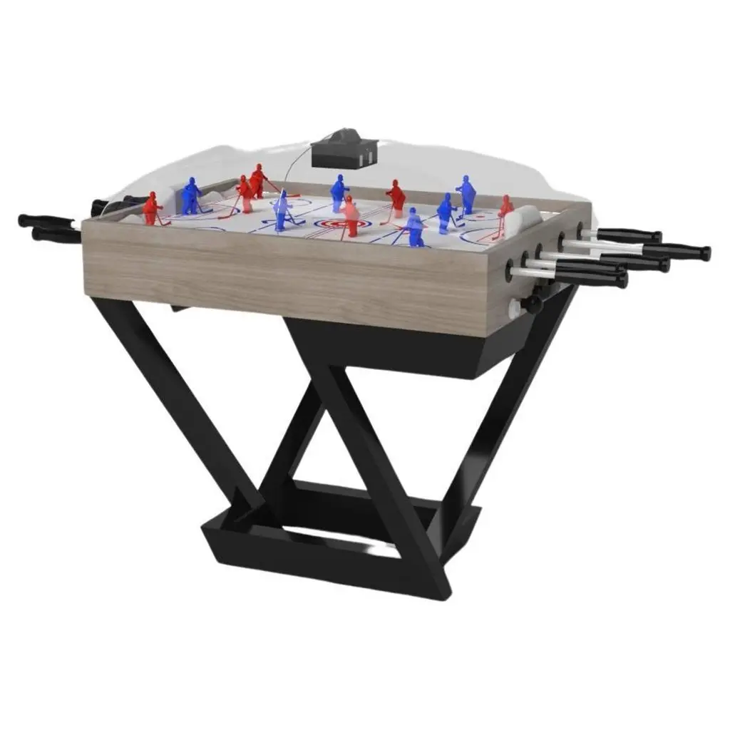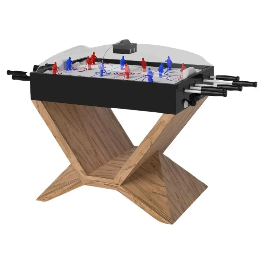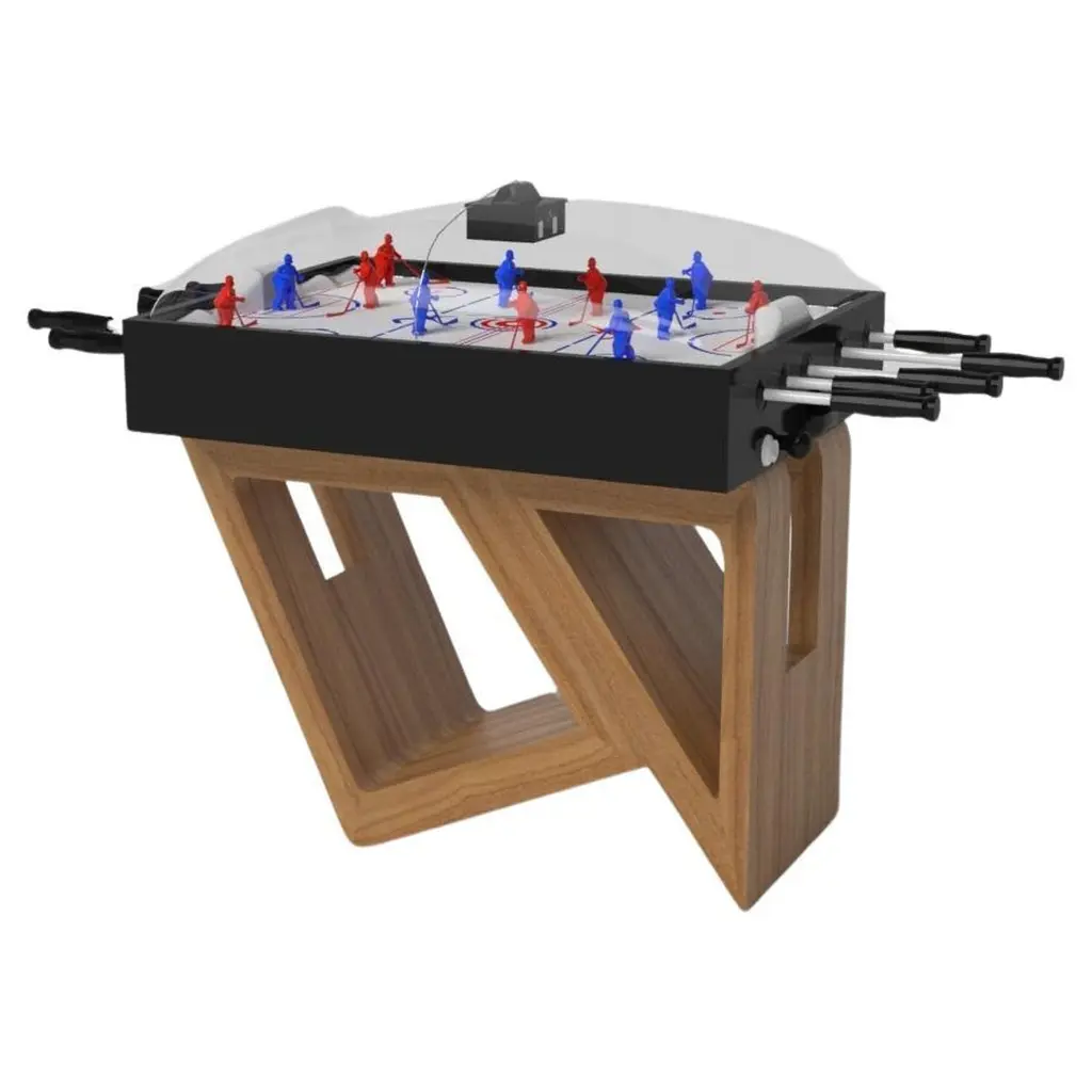 With a combination of acute angles, smooth lines, and geometric configurations, the Maze dome hockey table in walnut is characterized by a labyrinth-inspired base with a mystifying motif. Beautifully detailed with a smooth black top for game play, this luxury game table exudes cutting edge style and contemporary charm, making it a fascinating focal point in any room.Size:45”X34”X47”