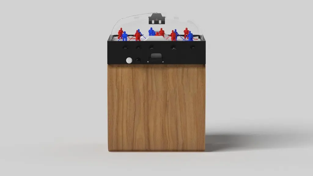 Handcrafted with intricate accents and a precision-carved curved base, the Sid dome hockey table in black encompasses a series of smooth edges, distinctive details, and unconventional elements in one unique expression of luxury design. Built by hand from solid maple wood, this contemporary game table boasts a signature blend of expert craftsmanship and novel composition.Size:45”X34”X47”
