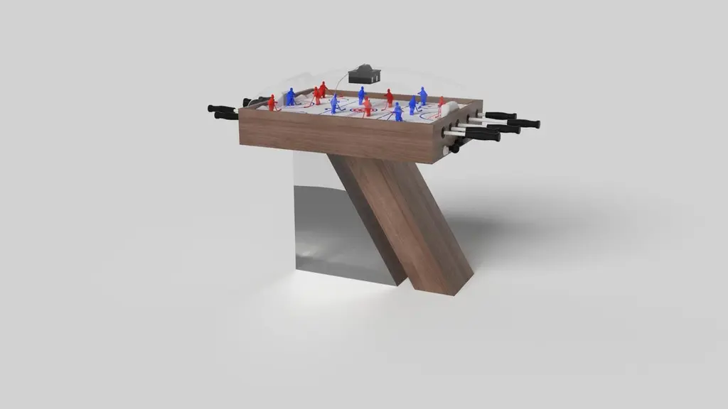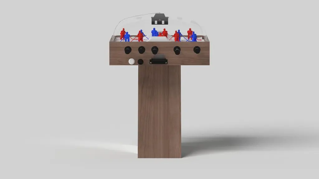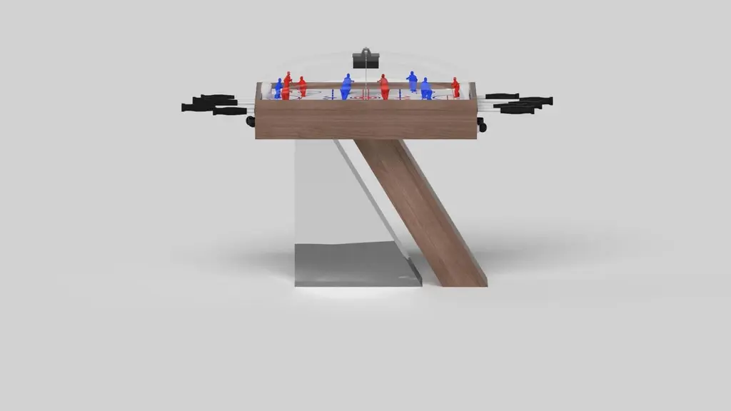 An asymmetric base creates a free-floating silhouette, making the Stilt dome hockey table in chrome with walnut a compelling, contemporary addition to the modern home. Crafted from durable metal with walnut wood accents, this luxury handcrafted game table boasts an exclusive, thought provoking design with an angled, offset base that seems to defy the laws of gravity and logic.Size:45”X34”X47”