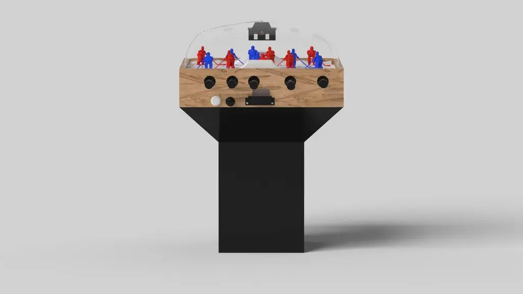 Minimalist design meets opulent elegance in the Trestle dome hockey table. Detailed with a professional surface for endless game play, this contemporary table is expertly crafted. Square block legs give it a stark, geometric look that contributes to its timeless appeal.Size:45”X34”X47”