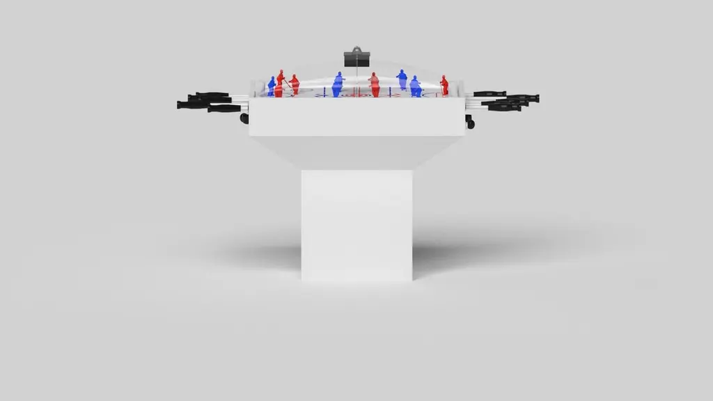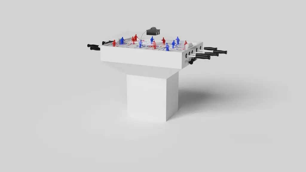 Minimalist design meets opulent elegance in the Trestle dome hockey table. Detailed with a professional surface for endless game play, this contemporary table is expertly crafted. Square block legs give it a stark, geometric look that contributes to its timeless appeal.Size:45”X34”X47”