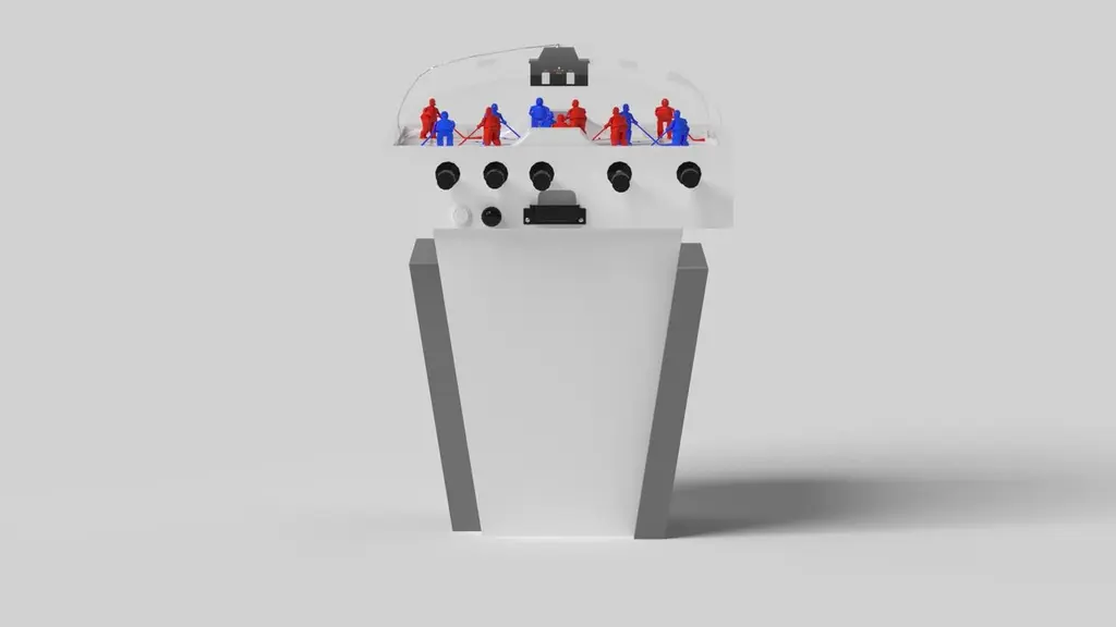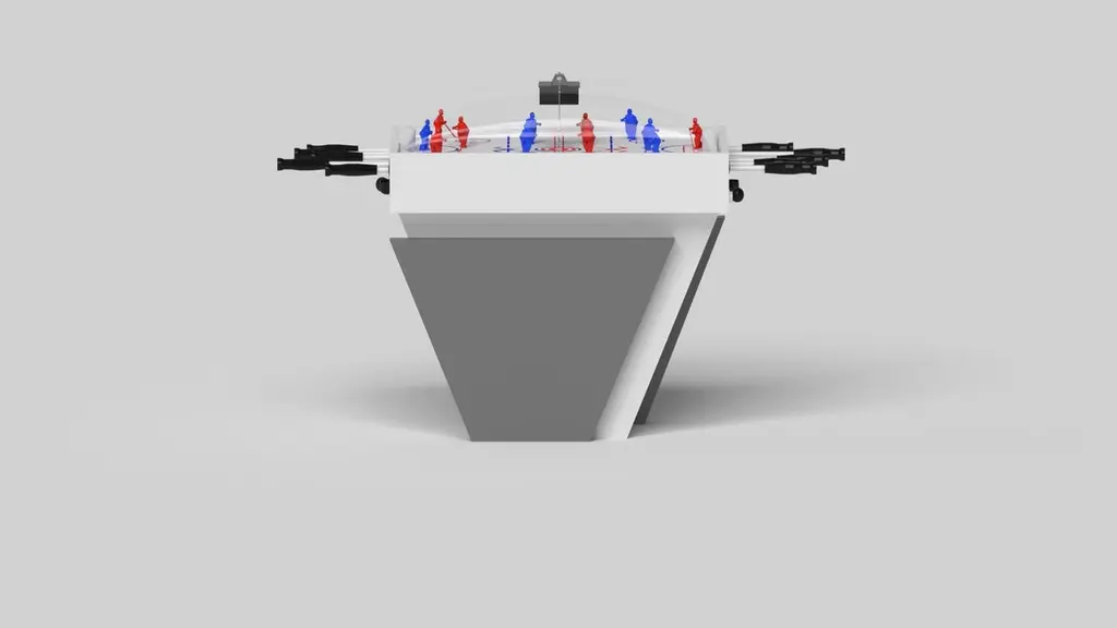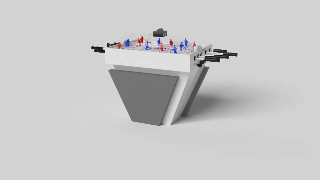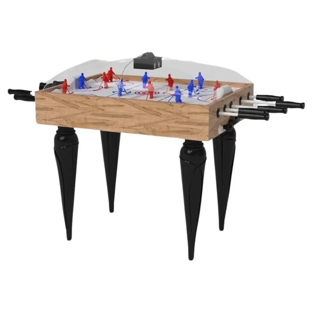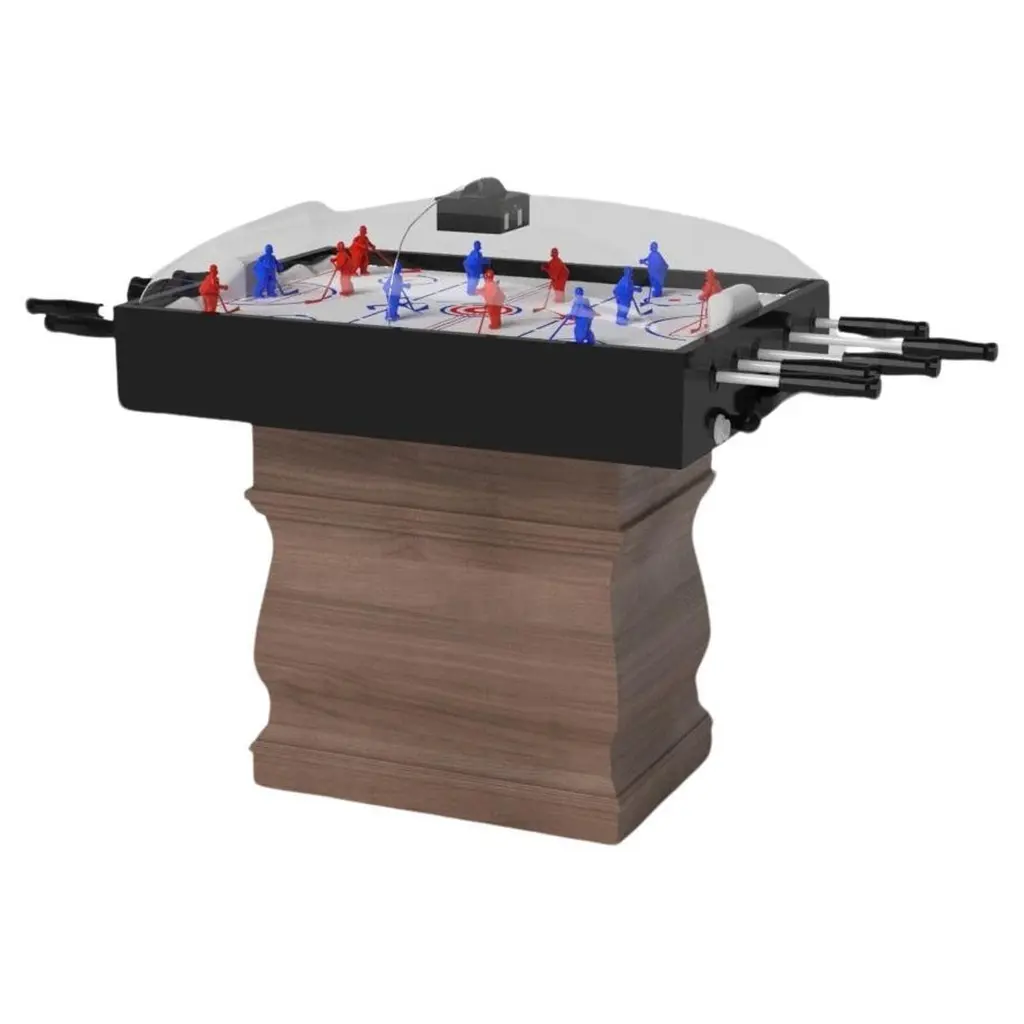 Handcrafted with clean lines, sharp angles, and a pyramid base, the Vogue dome hockey table in chrome with black strikes the perfect balance between sport-inspired style and contemporary design. Timeless in its appeal and revered for its practicality and purpose, this custom game table is beautifully crafted from durable metal with solid black maple wood accents that give it a cutting edge look.Size:45”X34”X47”
