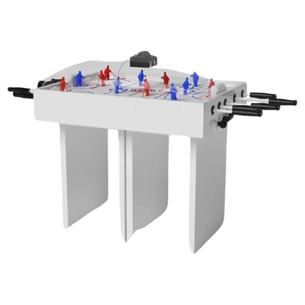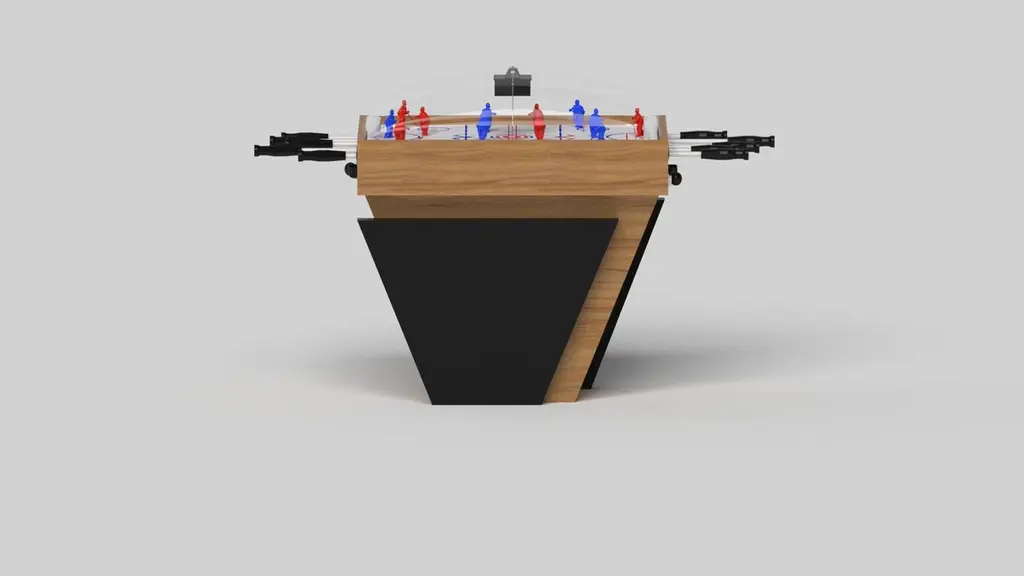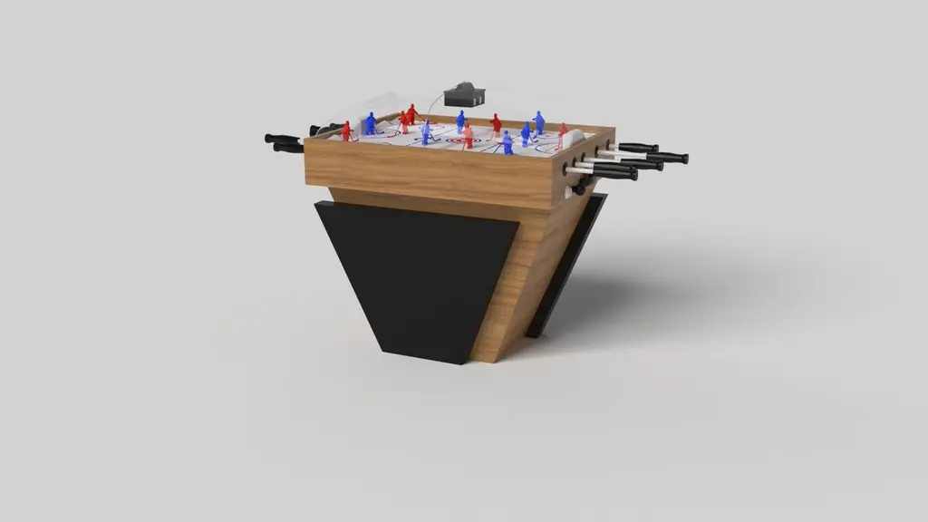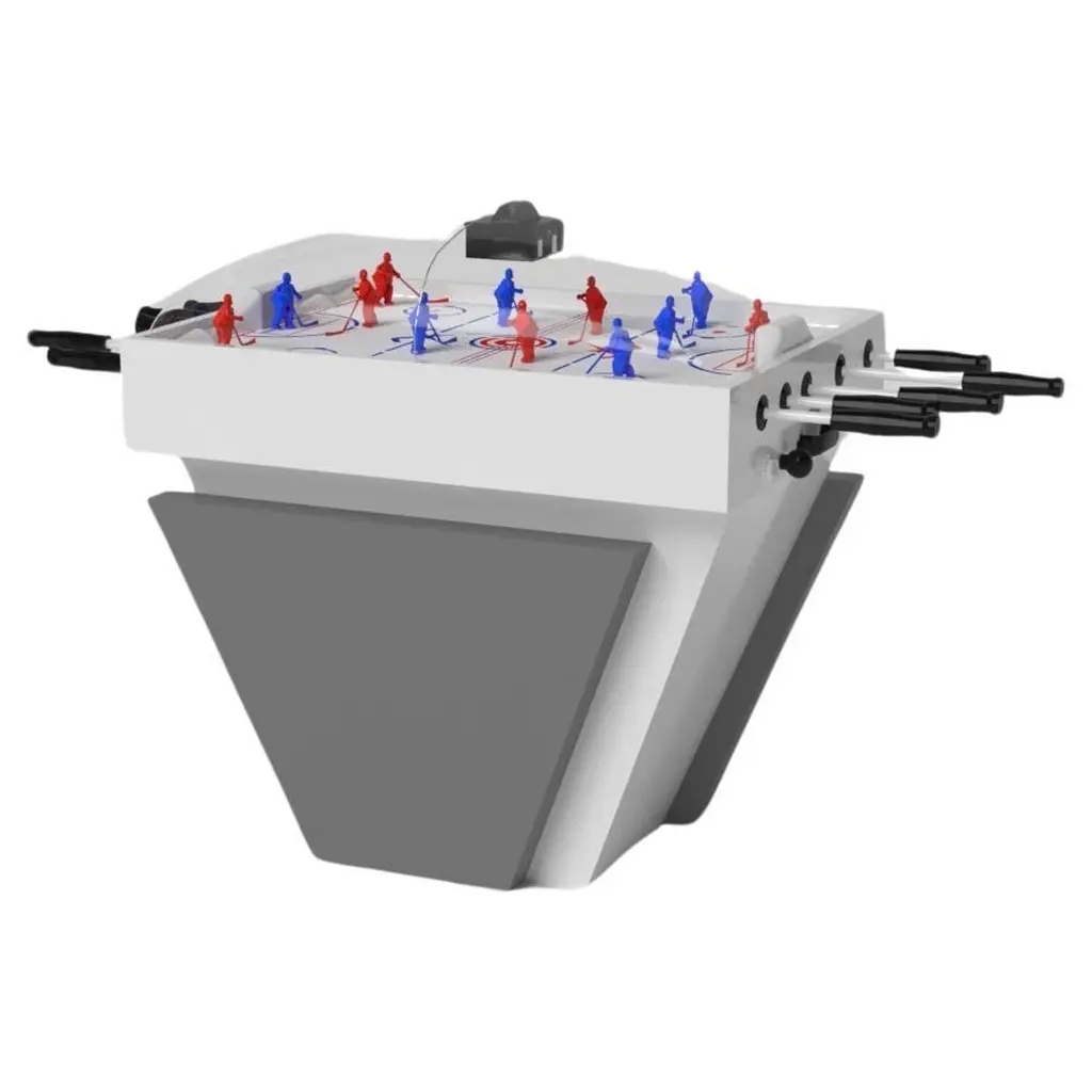 Handcrafted with clean lines, sharp angles, and a pyramid base, the Vogue dome hockey table in chrome with black strikes the perfect balance between sport-inspired style and contemporary design. Timeless in its appeal and revered for its practicality and purpose, this custom game table is beautifully crafted from durable metal with solid black maple wood accents that give it a cutting edge look.Size:45”X34”X47”