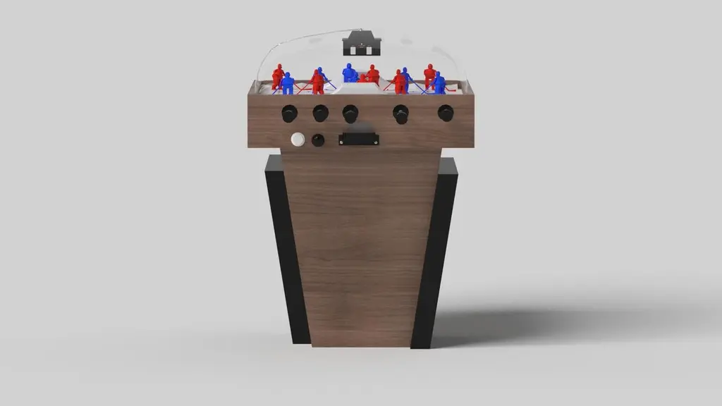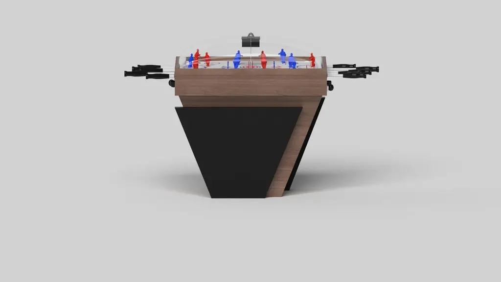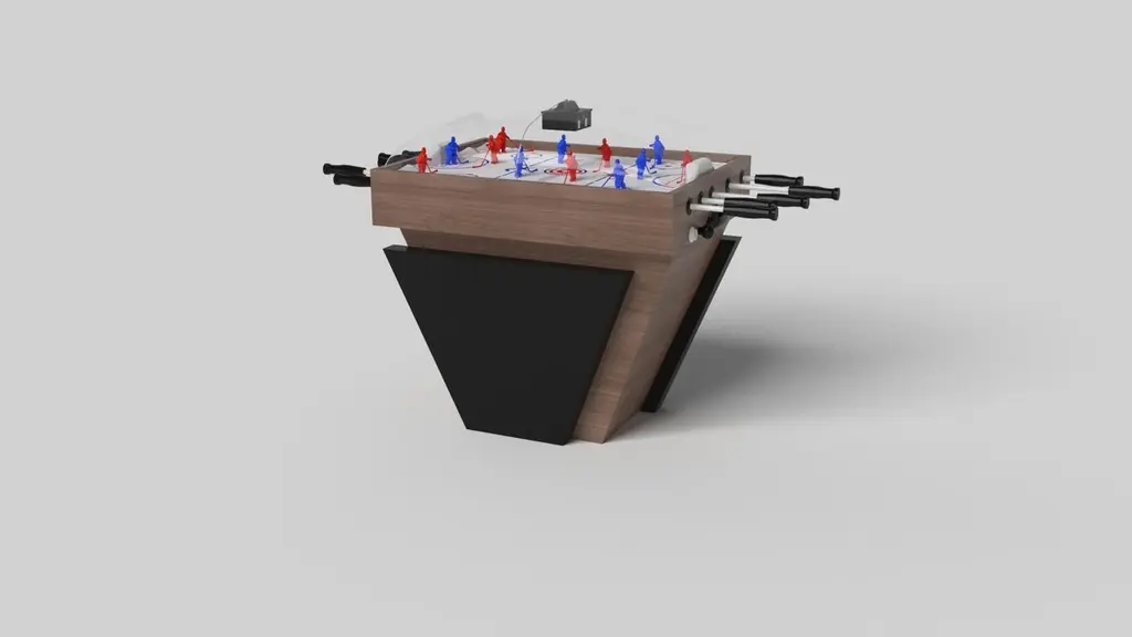 Handcrafted with clean lines, sharp angles, and a pyramid base, the Vogue dome hockey table in chrome with black strikes the perfect balance between sport-inspired style and contemporary design. Timeless in its appeal and revered for its practicality and purpose, this custom game table is beautifully crafted from durable metal with solid black maple wood accents that give it a cutting edge look.Size:45”X34”X47”
