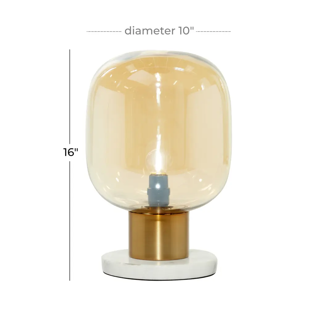 Gold Metal Room Table Lamp With Clear Dome Shaped Shade And Marble Base - 10 X 10 X 16 - 10 X 10 X 16 - White