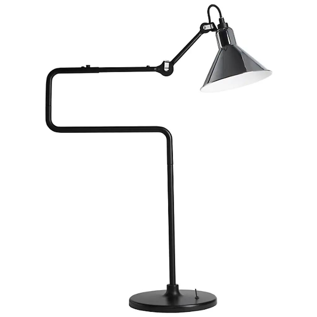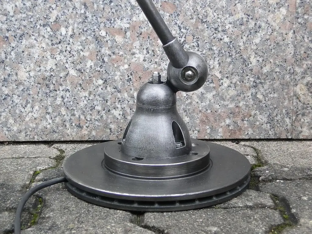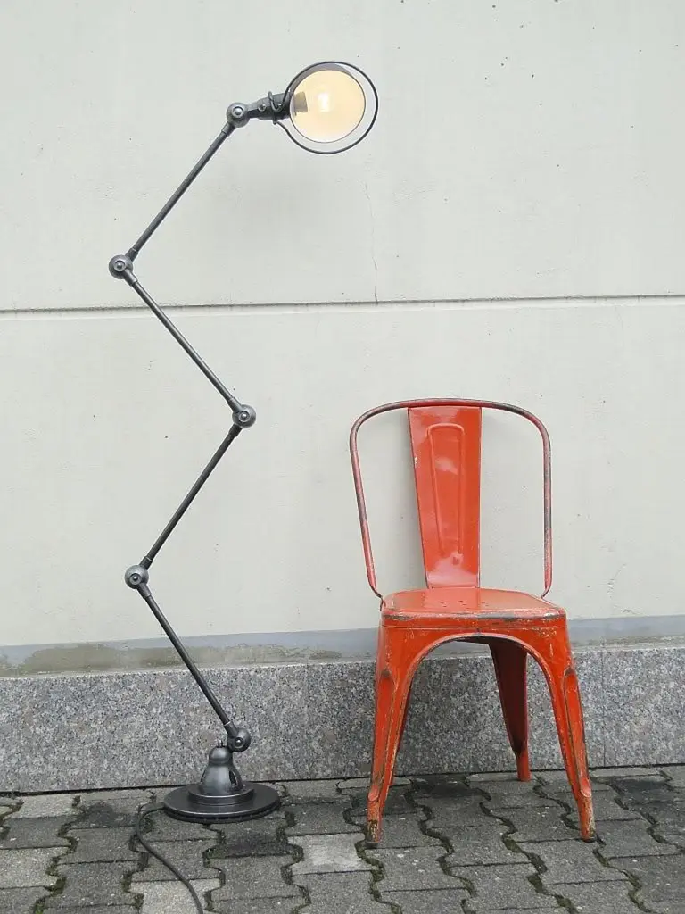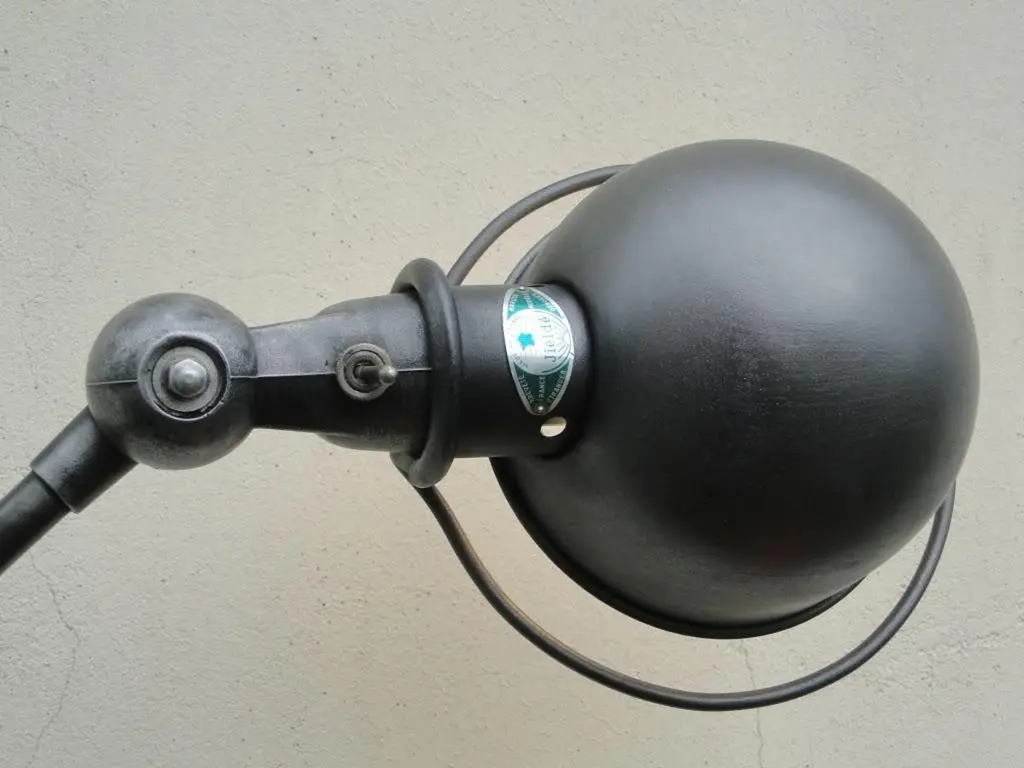 4 arms Jielde lamp graphite - reading lamp - French industrial lampDesigned by Jean-Louis Domecq in the early 1950sOriginal Jielde lamp, professionally restored in our workshopThe inside of the shade is coated with heat-resistant paintThe lamp stands on a new ventilated brake disc, which guarantees the best stabilityThe electrification has been adapted to today's standard and works with an E27 light bulb - the metal switch is on the schade.4 arms: 15,7 in / 40 cmØ of the shade 6.29 in/ 16cm Ø with ring 7.87 in/ 20cmTotal height adjustable 70.86 in / 180 cmThe lamp has no damage - slight, normal signs of use after approx. 70 yearsThey are in perfect working order and work whit ALL CURRENTSWe deliver the lamp with the plug corresponding to your country.These are Authentic 50’s lamps and not modern reproductionsCondition of both the lamps is good – with normal signs after more than 70 years in an industrial workshop.