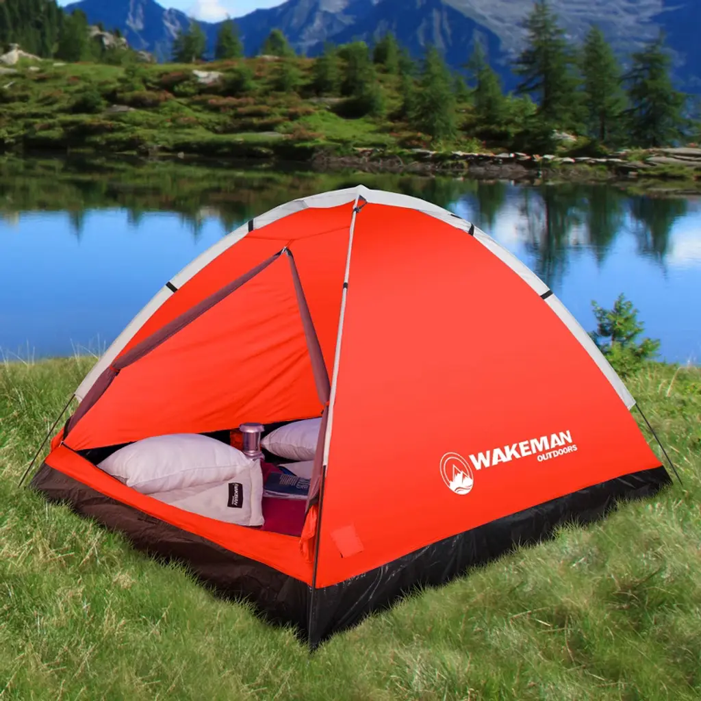 Make your camping adventure a pleasant and memorable one with the Tents for Camping by Wakeman Outdoors. This easy-to-assemble backpacking tent features fiberglass poles, a removable rain fly, a mesh ventilation window, a small electric access port to run a power cord into the tent, and an interior storage pocket to keep your camping gear neat and organized while enjoying the outdoors. With a rain-resistant polyurethane coating and taped seams, this tent for beach is a great 3-season option that's easy to set up and take down, making it perfect for most outdoor activities, including mountaineering, camping, outdoor music festivals, or relaxing at the beach.