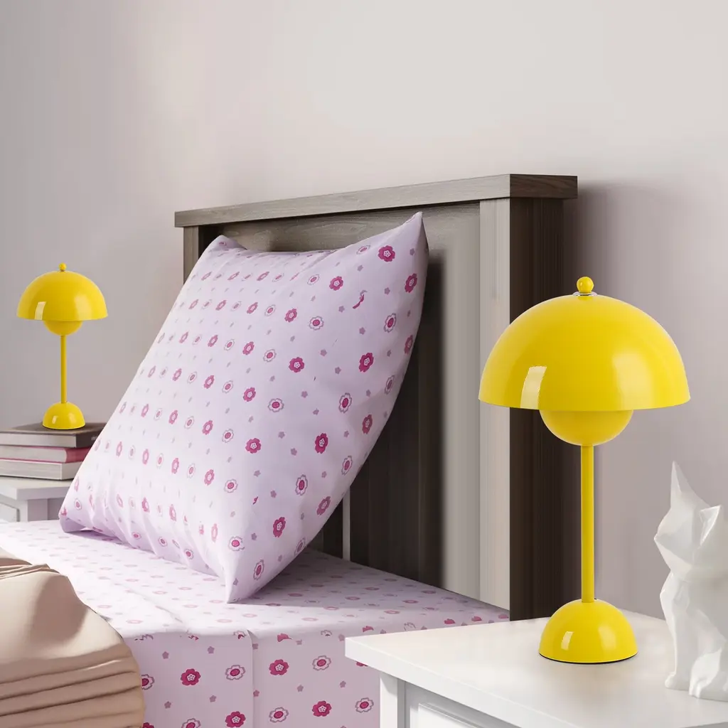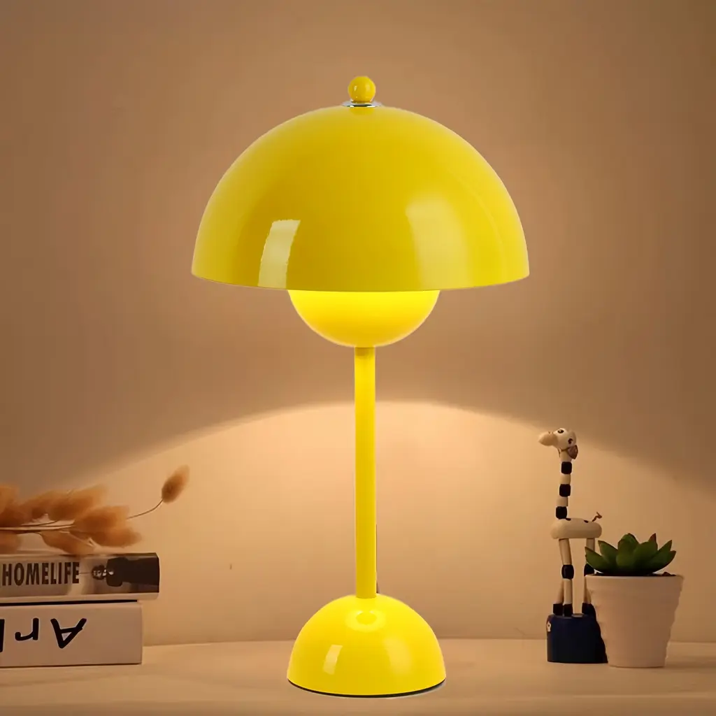 Modern Flower Cute Small Dome Shade Colorful Table Lamp,nordic Minimalist Mushroom Lamp Retro Nightstand Bedside Lamp Desk Lamp - Yellow