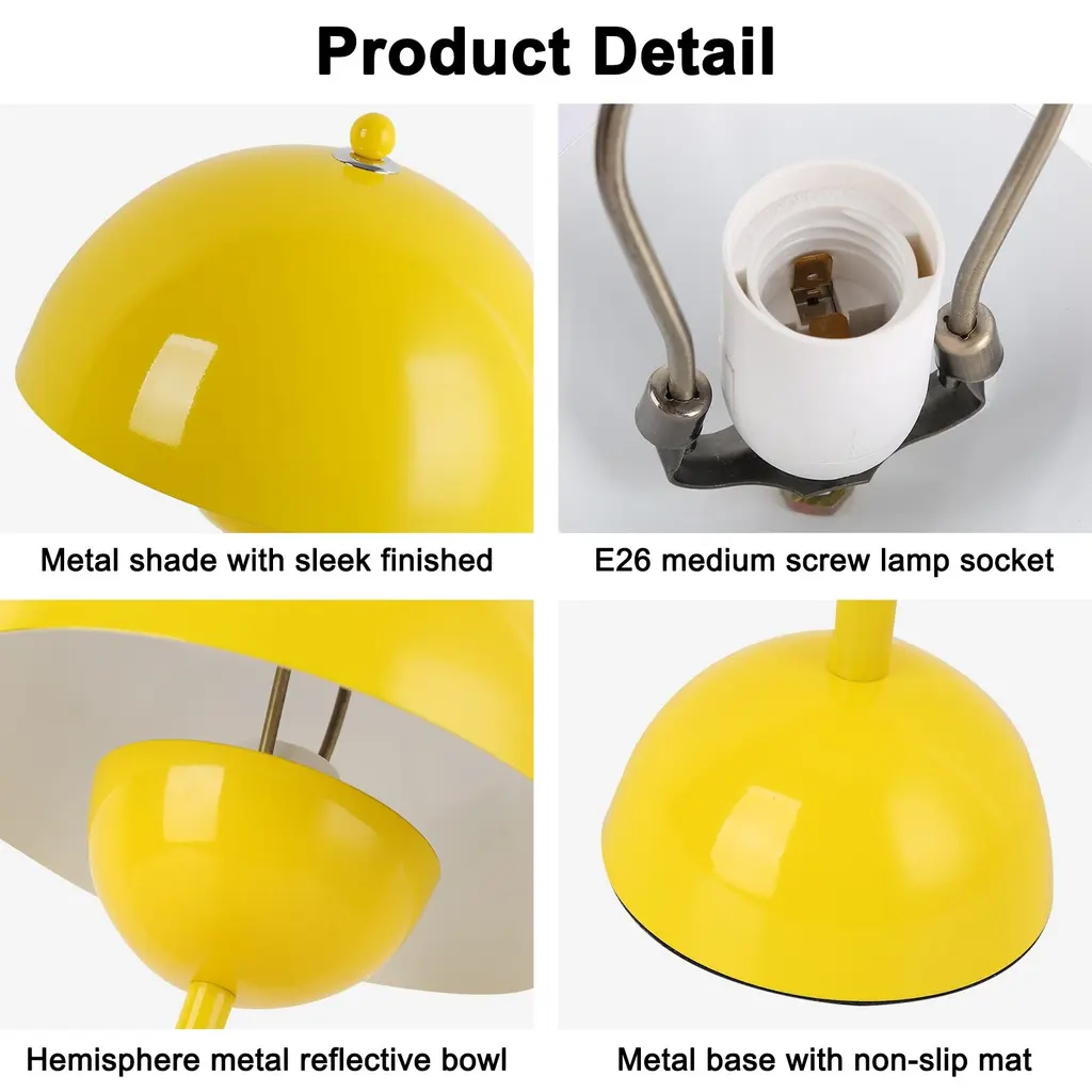The Industrial Minimalism flower table lamp has a mid century modern design and perfect detail handling,creating a delicate and modern appearance, which is suitable for different interior scenarios, such as your bedrooms, living room, office, children’s room, home decoration art, etc.【Various colorful Table Lamp Specifications】Desk lamp height:13.4''. Lampshade: 9.8'' (D) , 4.9''(H). Lamp base:4.7'' (D), 2.36''(H). The length of the cord with switch: 63''.【Sleek and Delicate Table Lamp】This is a high-quality and modern mid-century dome table lamp made entirely of metal. It has a sleek look and beautiful finish that can be matched with a variety of decor styles such as contemporary, industrial, vintage, retro and so on. A variety of color options are available.【Minimalist Retro Design】Flower lamp has a mid century modern design and perfect detail handling, allowing people to feel the high-quality texture at a glance, creating a delicate and modern appearance; The flower shape composed of three minimalist semicircles symbolizes harmony, love, and peace, representing the pursuit of a better life. A fashionable decoration that integrates into life.【Soft Reflected Light】This stylish desk lamp is illuminated by the reflection of the inner wall of the lampshade. At the bottom of the lampshade there is a light shield, which avoids direct light rays. So its light is very soft, not dazzling, and can protect the eyesight. It is perfect as a reading desk lamp or night light.【Widely Used】Modern Flowerpot Lamp is lightweight, portable, and mobile, suitable for multiple scenarios. Lamp can be placed freely, creating a charming and romantic atmosphere no matter where it is placed, and adding visual beauty. Comfortable, soft, and warm lighting is suitable for any environment. It can perfectly decorate bedrooms, indoor and outdoor restaurants, bars, and cafes,children’s room etc.