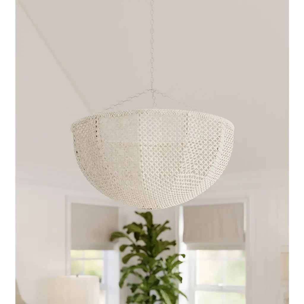 Palecek Quinn Coastal Beach White Wood Coco Beaded Inverted Dome Chandelier