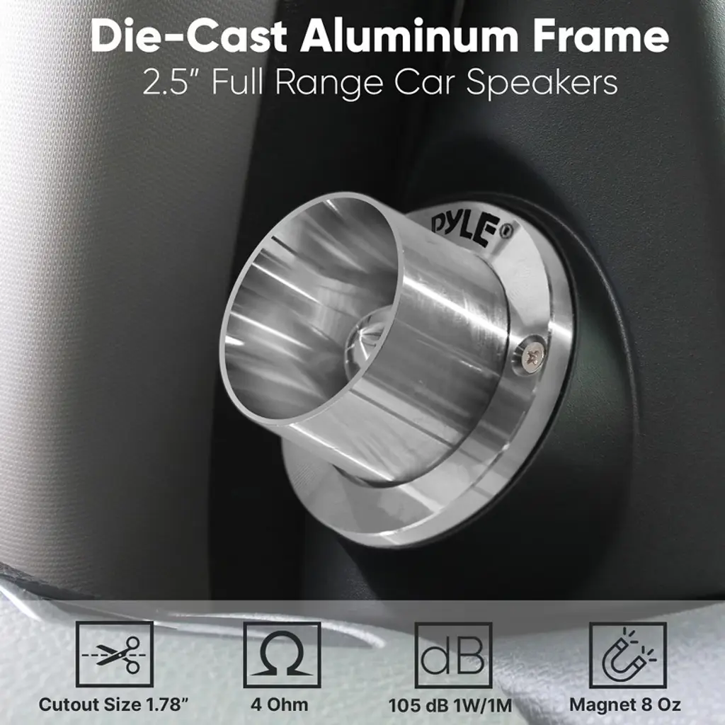The Pyle PDBT30 Titanium Dome Tweeter is engineered to deliver precise and clear high-frequency audio, perfect for enhancing your car's sound system. This 1-inch tweeter features a titanium dome for superior sound quality, paired with a die-cast aluminum frame that ensures both durability and lightweight performance. Capable of handling up to 100 watts of power, this tweeter enhances both bass and lower frequency notes, making it an excellent addition to any car audio setup. With three flexible mounting options—flush, swivel, and surface—installation is straightforward and versatile.