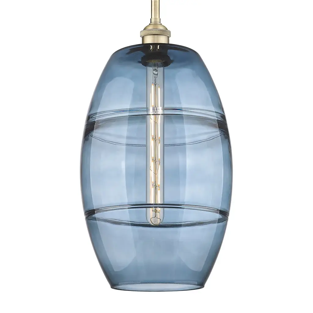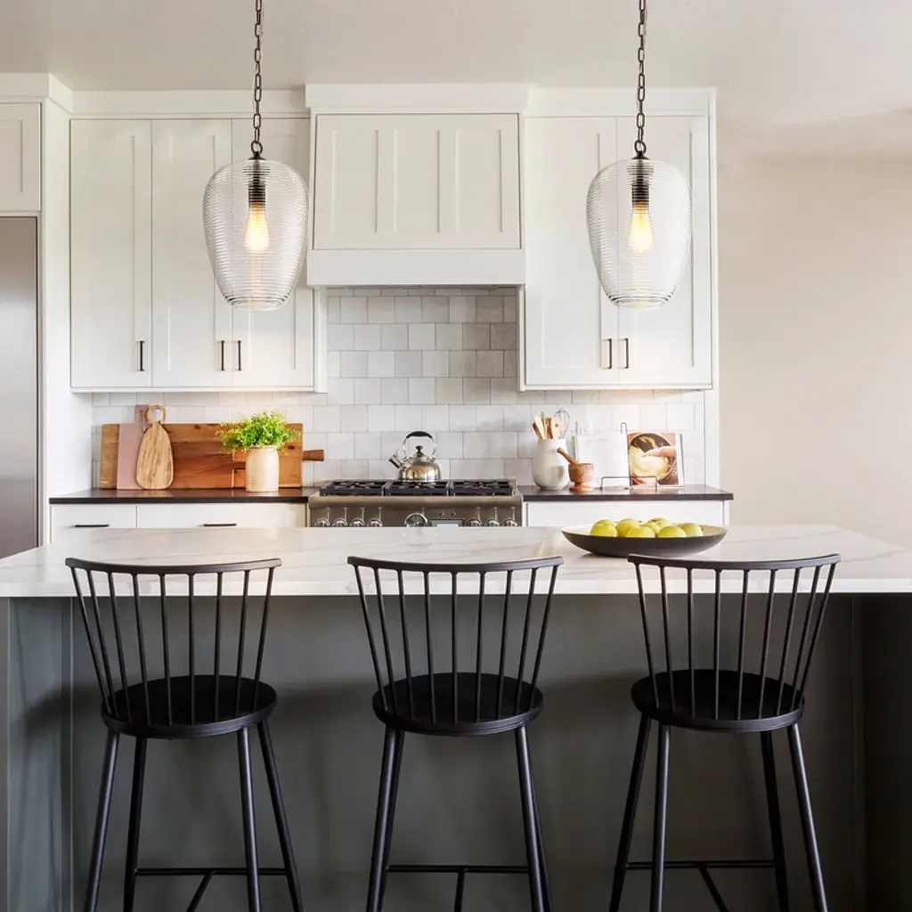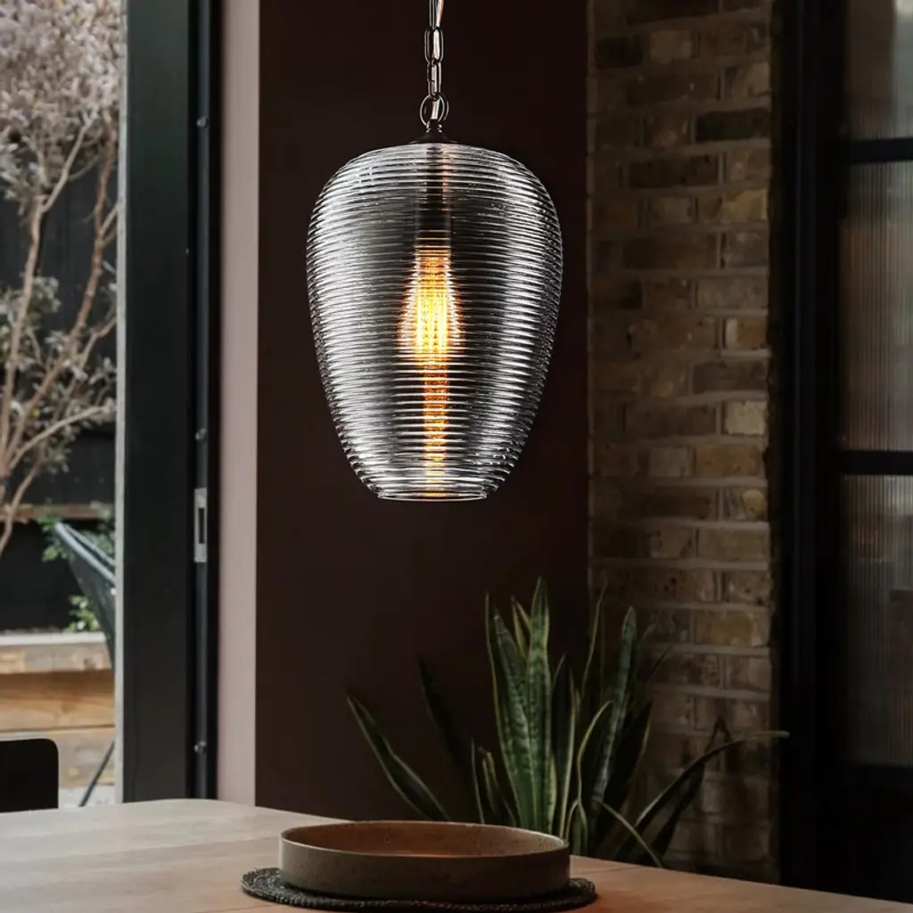 Elevate your space with this cocoon-shaped pendant light, featuring textured glass and horizontal ribbing for a unique, organic look. The hand-blown translucent shade diffuses light beautifully, creating a warm, glare-free ambiance ideal for dining rooms, bedrooms, or reading nooks. Its Scandinavian-inspired silhouette blends minimalist elegance with artistic flair, making it a striking focal point in modern or boho interiors. Crafted for both form and function, it offers soft, ambient lighting while saving space. Compatible with a 60W E26 bulb (not included) and dimmable for personalized brightness. Easy to install with included hardware, this pendant brings a serene, stylish glow to any room.