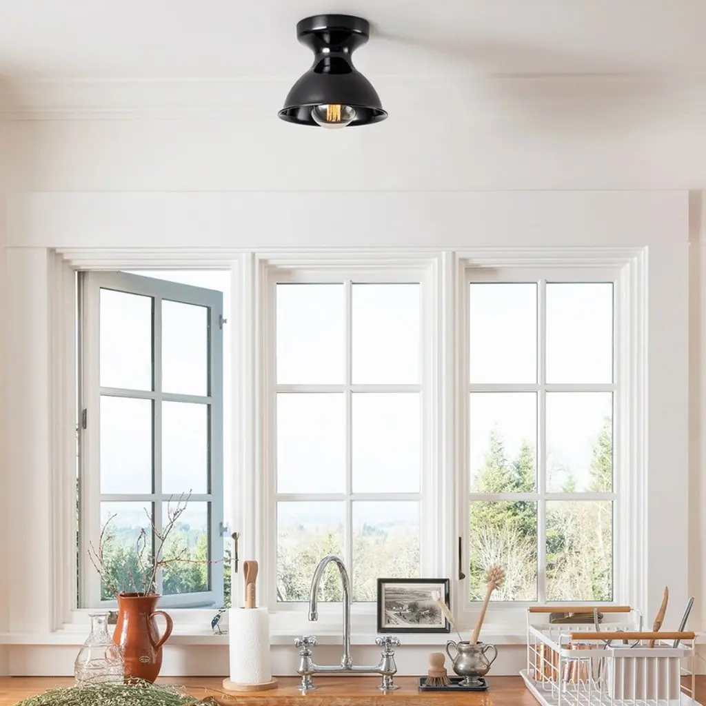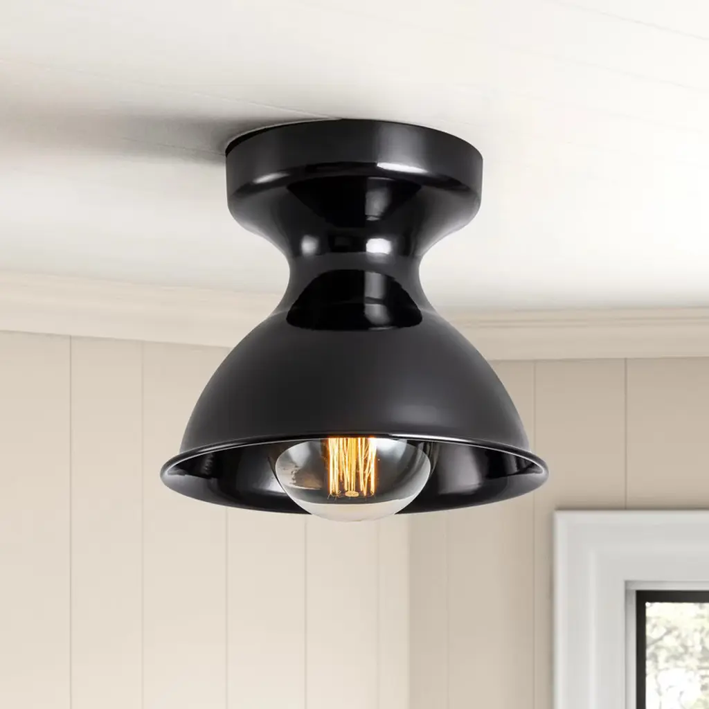 Bring vintage charm to your ceiling with this 8-inch flush mount light, featuring a sculpted metal frame shaped like an inverted flowerpot. The gracefully cinched waist and dome-like silhouette create timeless appeal in entryways, hallways, or reading nooks. Crafted for everyday ease, this fixture supports dimmable lighting to match your mood and moment. It comes with all mounting hardware included, and fits standard E26 sockets with 60W bulbs (not included). Whether accenting a rustic interior or softening a modern space, this flush mount light offers versatile charm and effortless installation.
