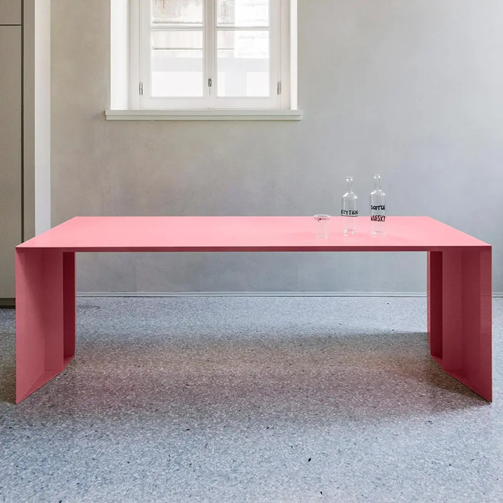 S3 Table by Secondome EdizioniDesigner: Claudia Pignatale + Giovanni Casellato.Dimensions: D 90 x W 220 x H 75 cm.Materials: Lacquered iron.Color: RAL 1001.Collection / Production: Secondome. Dimensions and colors customizable on request. Available finishes: any RAL color. Please contact us. Handmade lacquered iron table, obtained by bending a single metal sheet.THE GALLERYSecondome is a Design Gallery focused on contemporary designers and innovative projects worldwide.Founded by Claudia Pignatale in 2006, Secondome produces its own collection of Furniture and objects working to launch experimental designers, artisans and master craftsmen. Its mission lies in highlighting both the high quality manufacture of the Made in Italy brand and the originality of products, emphasizing the tradition of Italian craftsmanship whilst breaking the mold of lifeless objets d’art.The artisanal nature of Secondome’s production makes each piece individual and highly personalized.