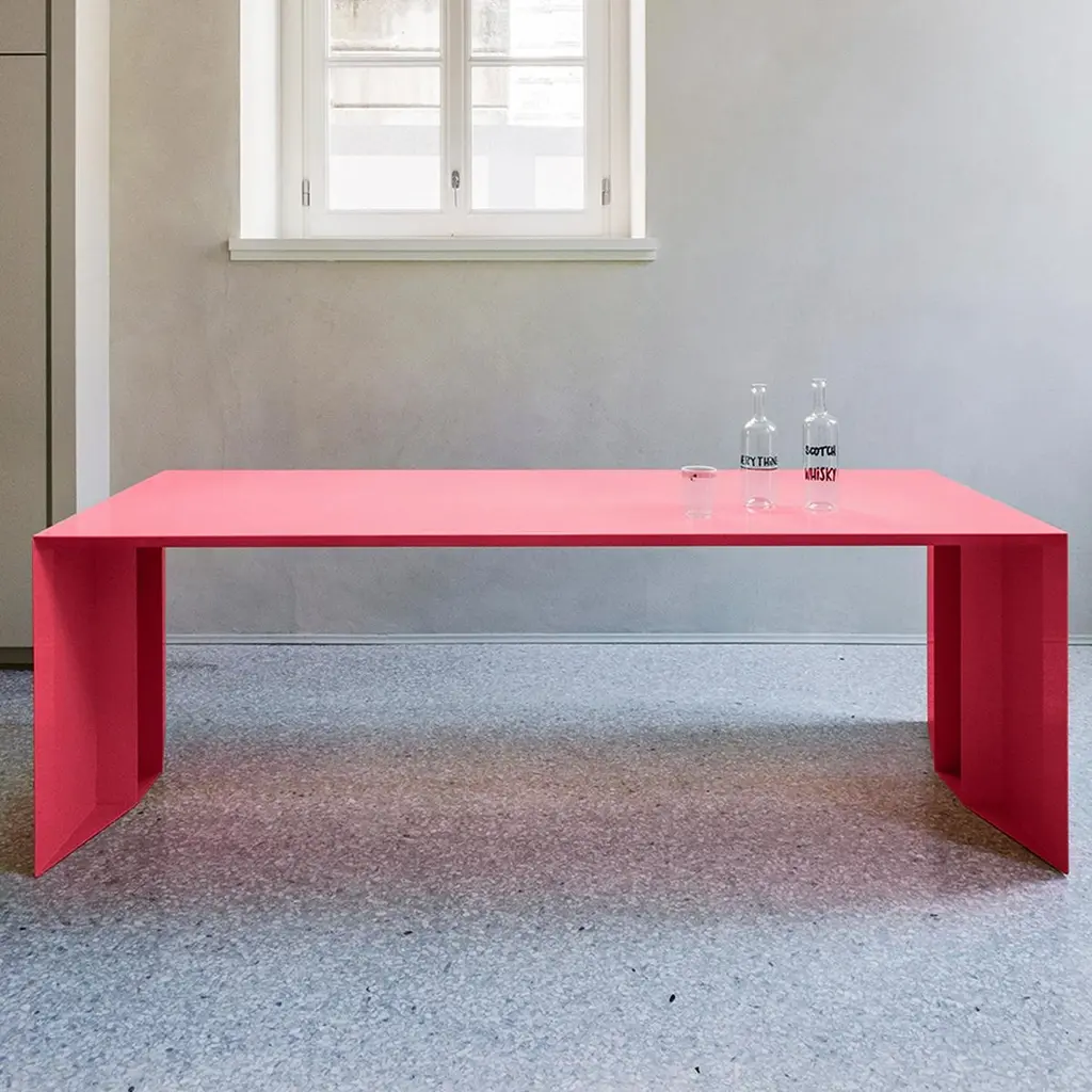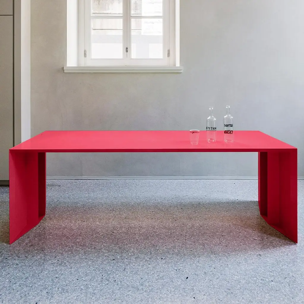 S3 Table by Secondome EdizioniDesigner: Claudia Pignatale + Giovanni Casellato.Dimensions: D 90 x W 220 x H 75 cm.Materials: Lacquered iron.Color: RAL 1004.Collection / Production: Secondome. Dimensions and colors customizable on request. Available finishes: any RAL color. Please contact us. Handmade lacquered iron table, obtained by bending a single metal sheet.THE GALLERYSecondome is a Design Gallery focused on contemporary designers and innovative projects worldwide.Founded by Claudia Pignatale in 2006, Secondome produces its own collection of Furniture and objects working to launch experimental designers, artisans and master craftsmen. Its mission lies in highlighting both the high quality manufacture of the Made in Italy brand and the originality of products, emphasizing the tradition of Italian craftsmanship whilst breaking the mold of lifeless objets d’art.The artisanal nature of Secondome’s production makes each piece individual and highly personalized.