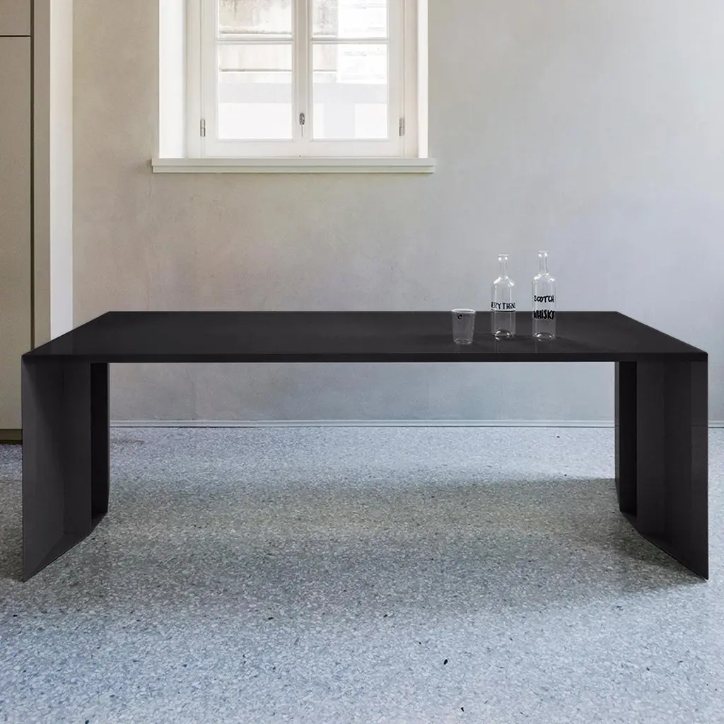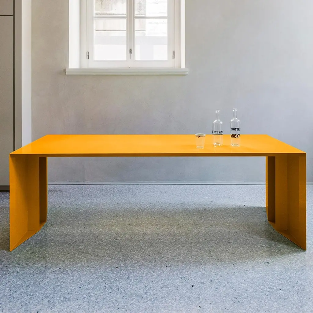S3 Table by Secondome EdizioniDesigner: Claudia Pignatale + Giovanni Casellato.Dimensions: D 90 x W 220 x H 75 cm.Materials: Lacquered iron.Color: RAL 9017.Collection / Production: Secondome. Dimensions and colors customizable on request. Available finishes: any RAL color. Please contact us. Handmade lacquered iron table, obtained by bending a single metal sheet.THE GALLERYSecondome is a Design Gallery focused on contemporary designers and innovative projects worldwide.Founded by Claudia Pignatale in 2006, Secondome produces its own collection of Furniture and objects working to launch experimental designers, artisans and master craftsmen. Its mission lies in highlighting both the high quality manufacture of the Made in Italy brand and the originality of products, emphasizing the tradition of Italian craftsmanship whilst breaking the mold of lifeless objets d’art.The artisanal nature of Secondome’s production makes each piece individual and highly personalized.