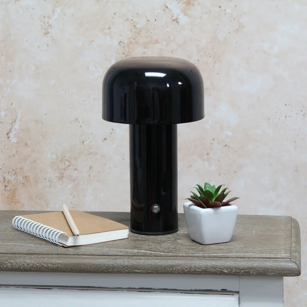 Simple Designs 8.26" Mushroom Magic Mini Dome Dimming Led Touch Lamp, Portable And Rechargeable - Black