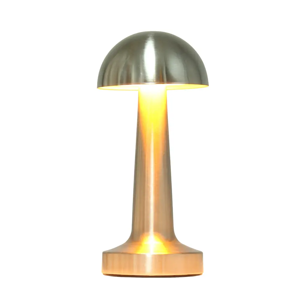 With its distinctive mushroom design, dimming functionality, and cordless convenience, the Mini Metal Dimming & Rechargeable Cordless 4-Way Touch Sensor Dome Desk Lamp is more than just a light source—it's a statement piece for any room. Its cordless, rechargeable feature gives you the flexibility to place it anywhere in your home or office, and the sleek metal dome design adds a contemporary touch. Whether you're looking for task lighting or a cozy atmosphere, this lamp has you covered.