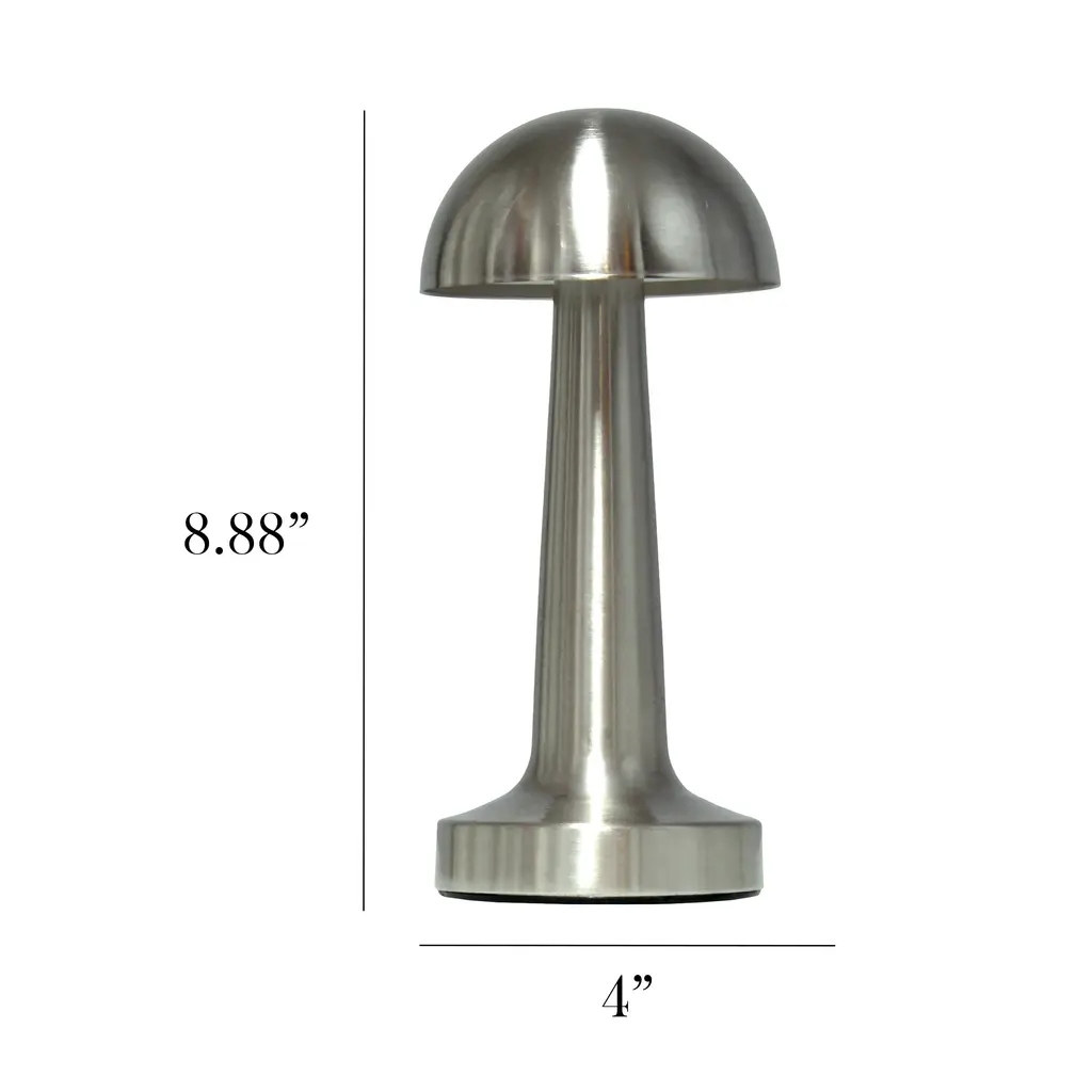 Simple Designs 8.88" Mushroom Magic Mini Metal Dimming & Rechargeable Cordless 4-Way Touch Sensor Dome Desk Lamp - Silver