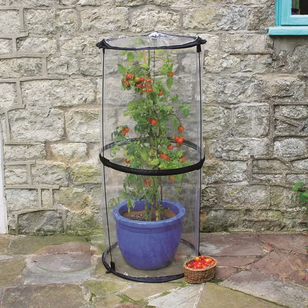 An attractive, lightweight growing cover, with a generous height for larger plants and air vents. Ideal for growing tomatoes and other tall plants. It will provide a cozy, moist growing environment and help to protect against blight, slugs and harsh weather. Pops up quickly and folds down neatly to store. Enables earlier planting. Comes with ground pegs to hold cloche in place over plant. For nearly 20 years, the Haxnicks company has been designing and manufacturing innovative garden care and plant protection products for their customers in England. Tierra Garden is proud to offer this distinctive line in the United States! Product: 19"D x 43"H, 1.75lbs.