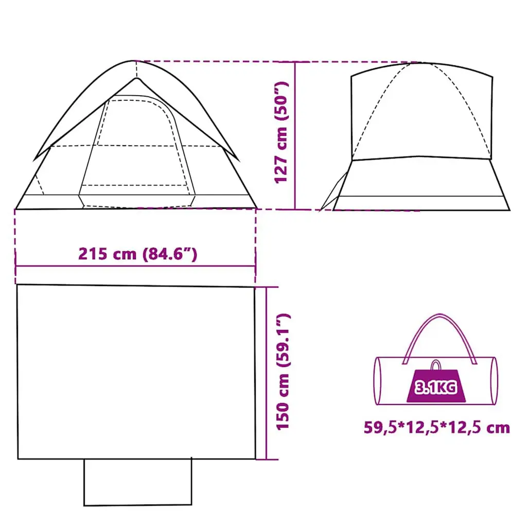 Vidaxl Camping Tent Dome 2-Person White Blackout Fabric Waterproof