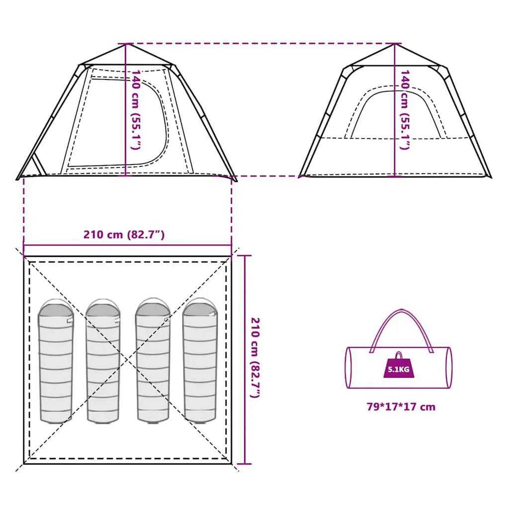 Vidaxl Camping Tent Dome 4-Person Blue Quick Release