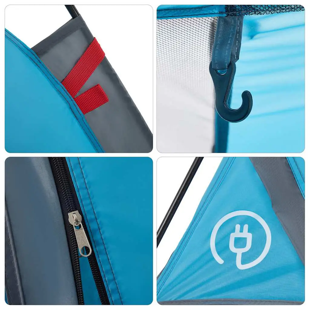 This camping tent with a modern look protects you from the unpleasant weather and provides a comfortable place for anywhere adventures.All-round waterproof design: This camping tent, made from polyester with a PU coating, is waterproof and wind proof. The taped seams effectively prevent rainwater infiltration, while the heavy-duty ground sheet helps maintain a dry and comfortable interior.Quick-release system: Set up the tent effortlessly with the quick-release system! Lay the tent down, extend the pre-assembled poles until they lock into place, and you're all set!King poles included for sun canopy: This camping tent includes king poles that make it a breeze to prop up the entrance door, creating a sun canopy. Now you can relish the great outdoors while staying shaded!Detachable rainfly: The detachable rainfly can be attached to the tent's top for weather protection and privacy.Lightweight and portable: The foldable and lightweight design allows you to easily pack the tent and store it in the included carry bag for easy transport.Warning:Keep all flame and heat sources away from this product fabric.