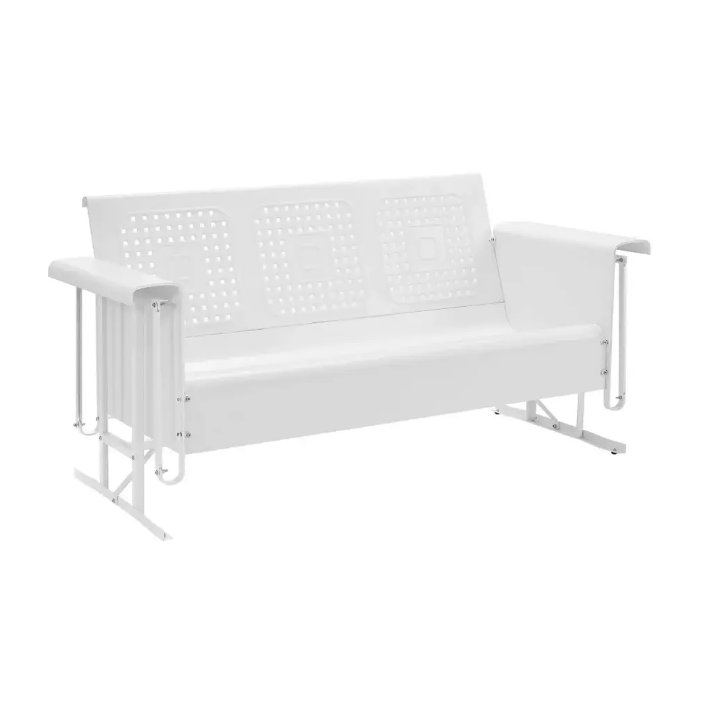 Glide back into lazy summer afternoons with the Bates Sofa Glider. This vintage-style sofa comes in a variety of vibrant colors, offering a fun outdoor lounging experience. The back features a unique basket weave design that allows air to circulate and a smooth gliding mechanism for relaxing in comfort. Made of durable steel, this glider has a powder-coated finish that resists rust and sun fade. The Bates Loveseat Glider is sure to add a dash of retro fun to your porch or patio.