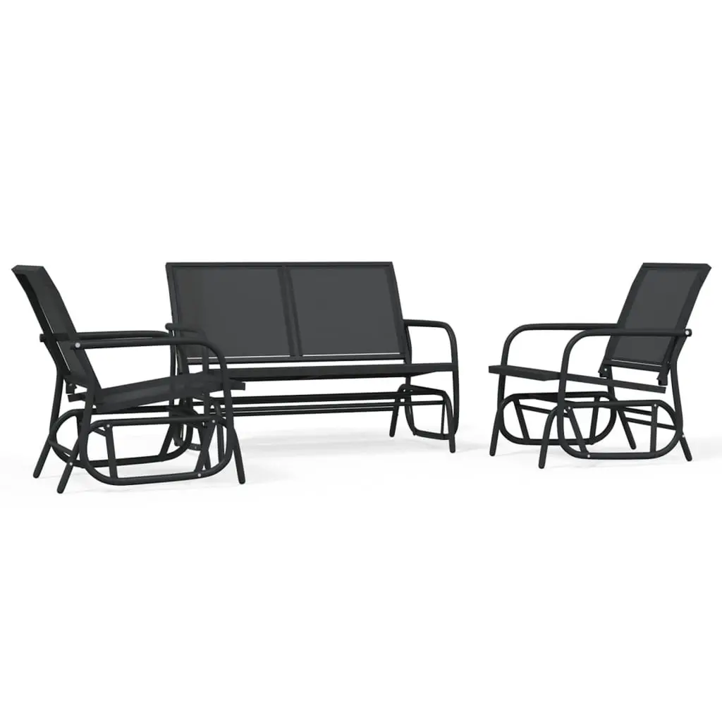 Gardenised Two Person Outdoor Double Swing Glider Chair Set With Center Tempered Glass Table, Loveseat Lawn Rocker Bench