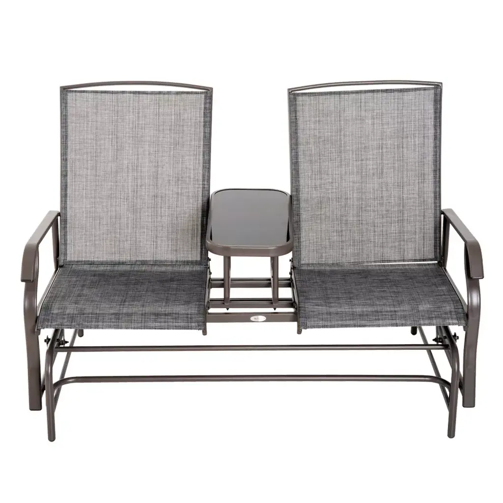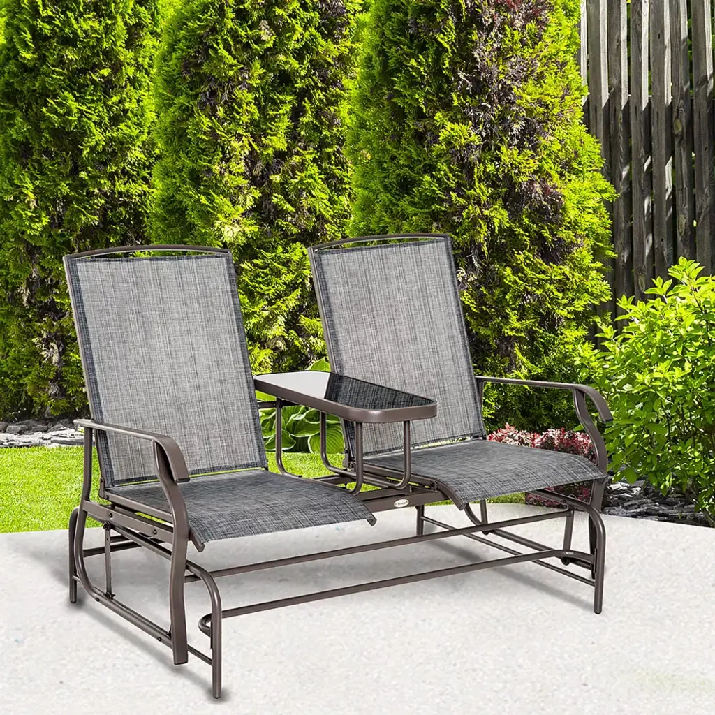 Outsunny 2-person Outdoor Glider Bench W/ Center Table, Steel Frame For Backyard Garden Porch, Gray