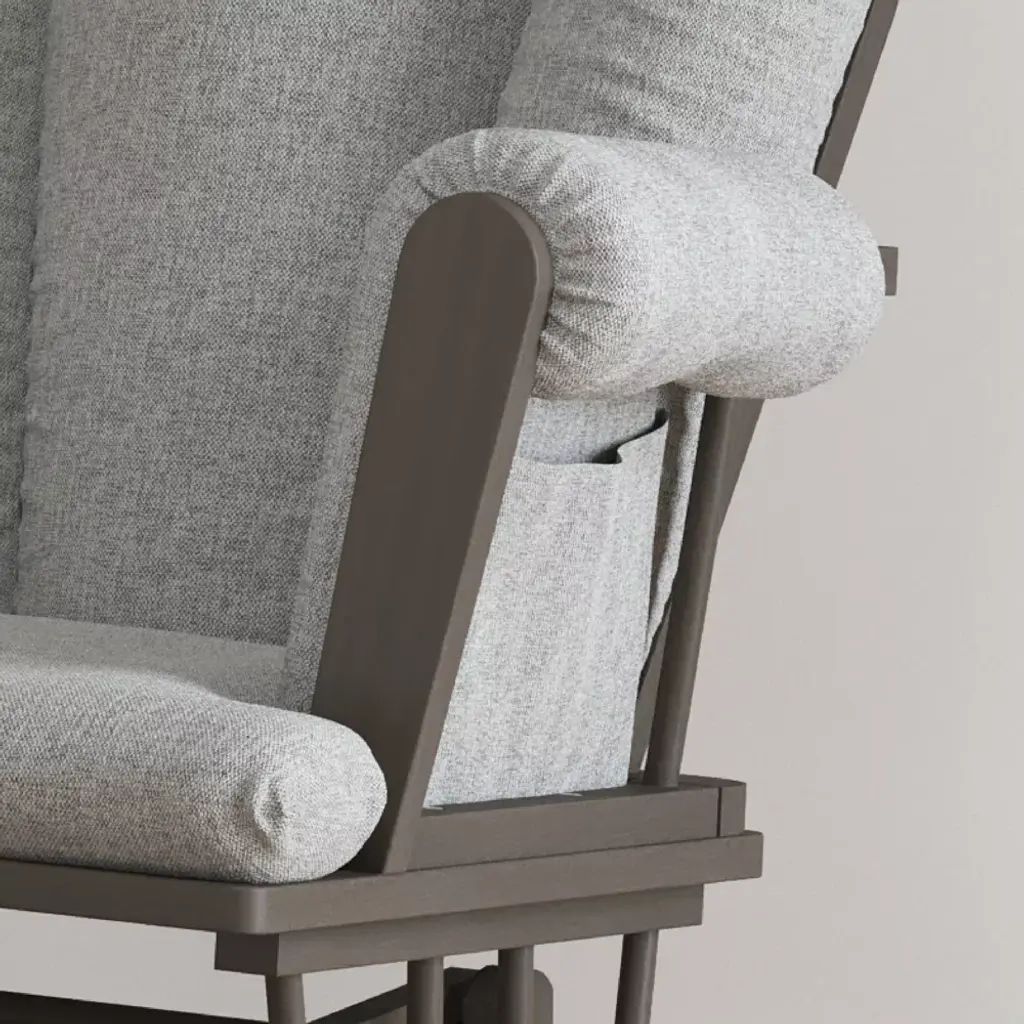 Rock, feed, and soothe your baby to sleep in comfort with the Forever Eclectic Tranquil Nursery Glider and Ottoman. Featuring upgraded foam padding and high quality fabric options, you'll look forward to those late night feedings as you put your feet up and glide in tandem with the matching ottoman. Available in 5 different fabric color options and 4 different wood frame finishes, you can choose your favorite Tranquil glider to create a quiet, peaceful spot to bond with your sweet bundle of joy.