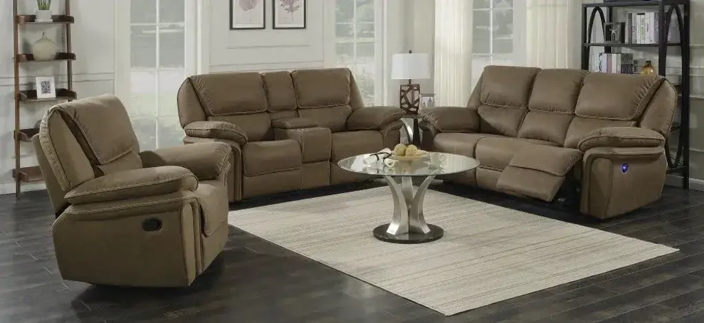 Allyn recliner offers comfortable luxury in your living room. Convenience is at hand with well-positioned power motion recline options and USB outlets. The smooth, oversized cushions upholstered in faux leather elevate the comfort of this motion reclining loveseat underneath a solid and engineered wood frame. This recliner has a sophisticated look and a soft, supple feel that is sure to make your living room the place to be. No assembly required!