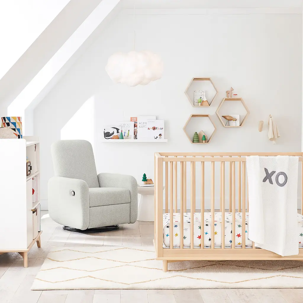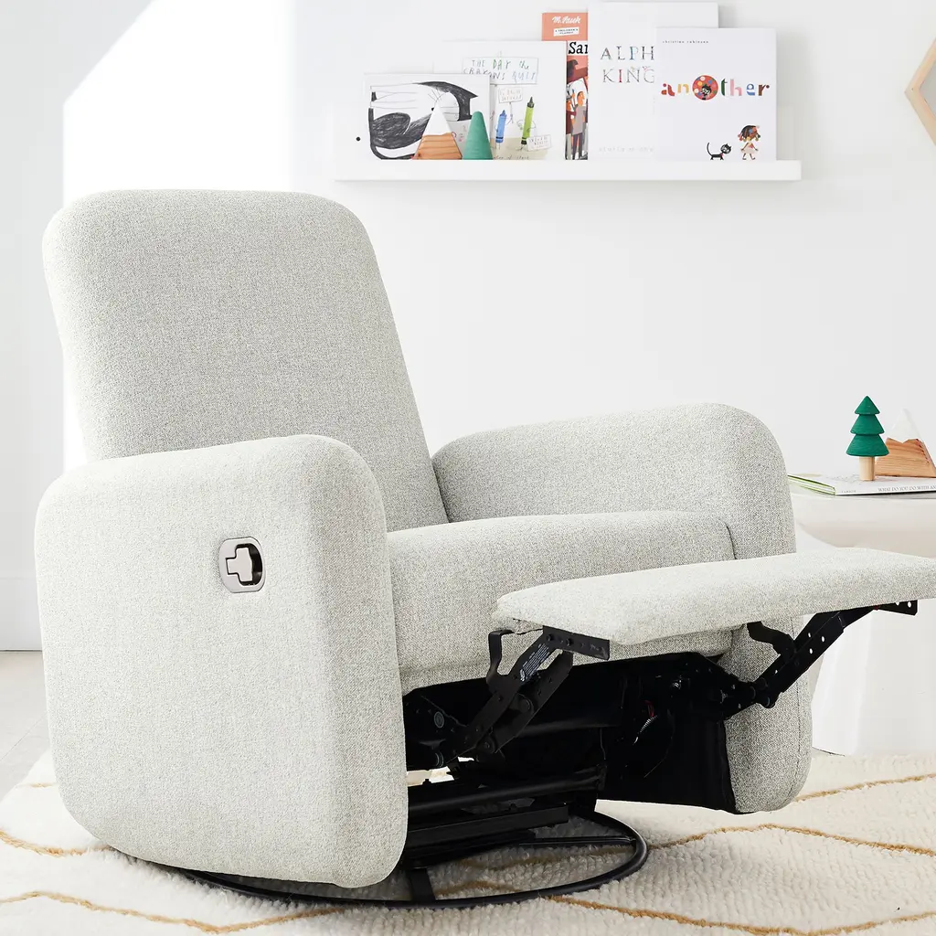 This nursery must-have reclines, glides & swivels. Wrapped cushions for around-the-clock support. Its sturdy kiln-dried wood frame & easy-clean upholstery. GREENGUARD Gold Certified as low VOC.