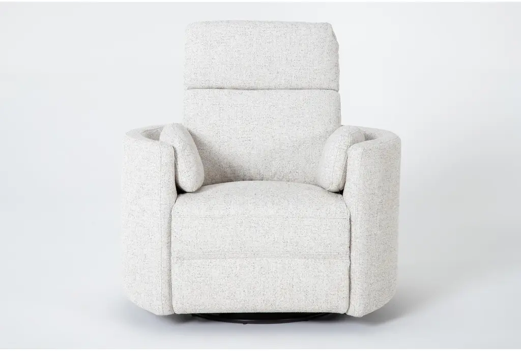 A cozy chair with a twist, our Rayna power swivel glider recliner offers a full range of motion for premium relaxation. It swivels side-to-side, glides front-to-back and reclines, so you can experience a variety of movements meant to help you rest and unwind. Curved arms hug you in a comfortable embrace, while plush pillows provide extra soft support. There’s even a USB port, so you can easily charge any device. This design is the perfect bedroom chair, reading chair, club chair or accent chair for living room.