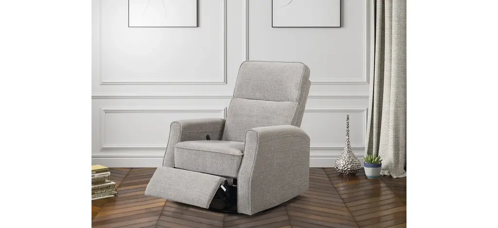The Tabor chair is a swivel glider recliner destined to be your favorite seat in the house. A full-sized seat with a narrower profile makes it a great fit for smaller spaces that might not accommodate a traditional oversized recliner. The neutral colors ensure it will coordinate with your current furnishings. Get ready to recline in love, with Tabor.