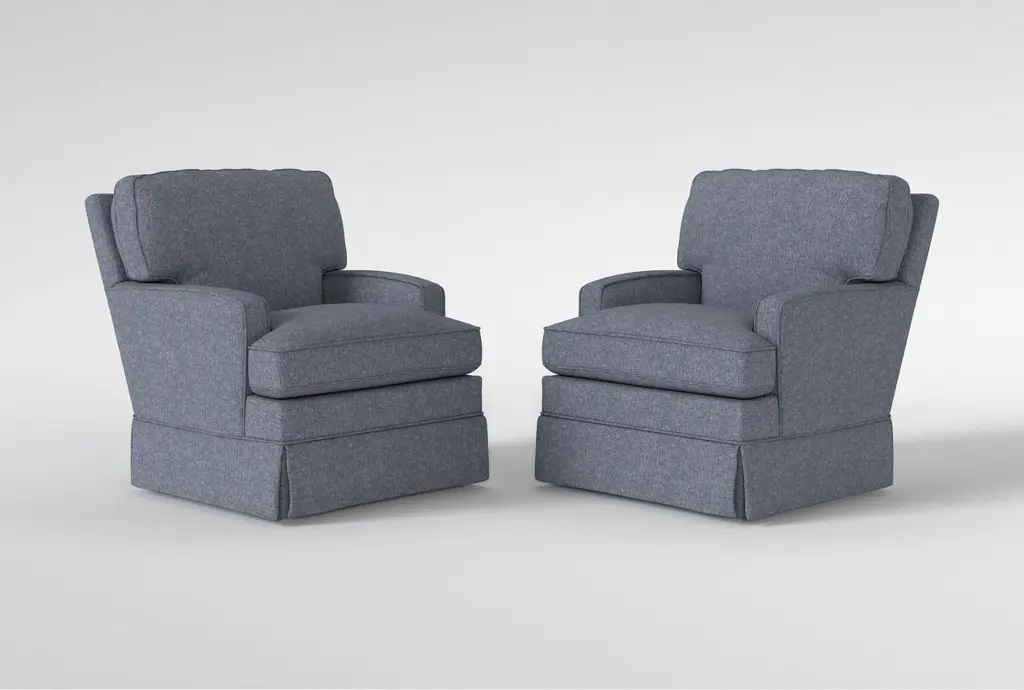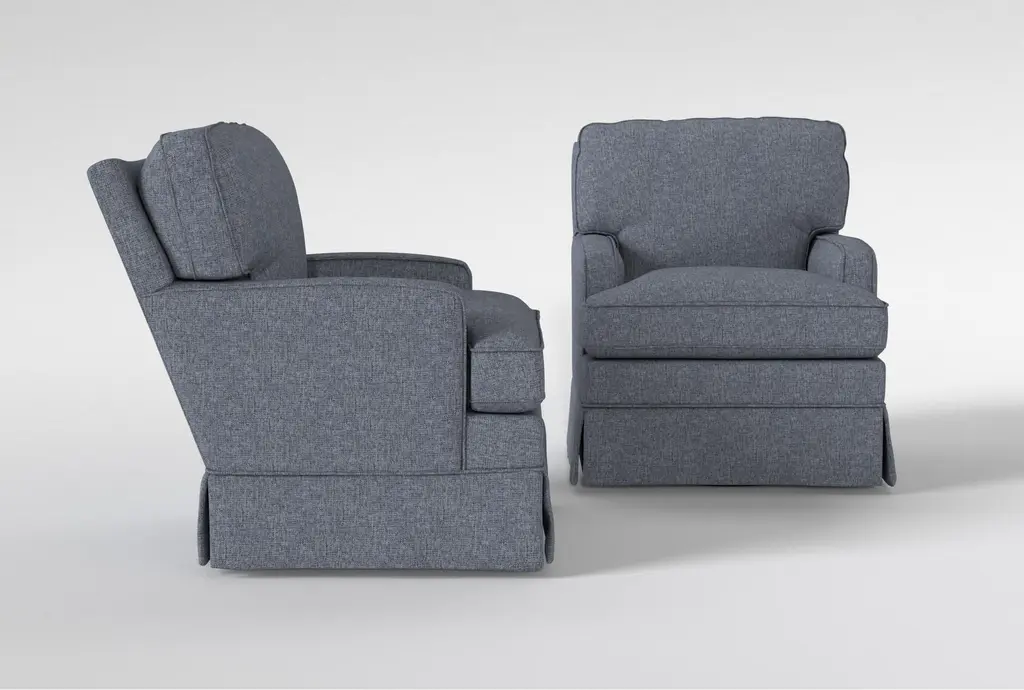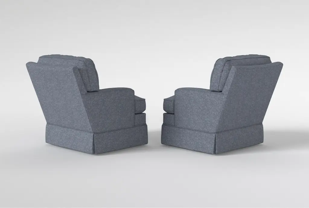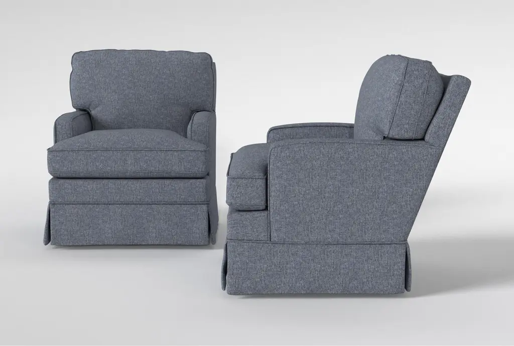 Bailey Denim Blue Fabric Track Arm Skirted Swivel Glider Set Of 2