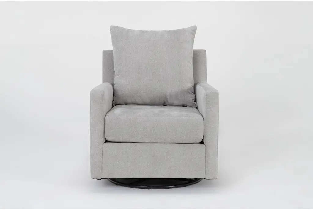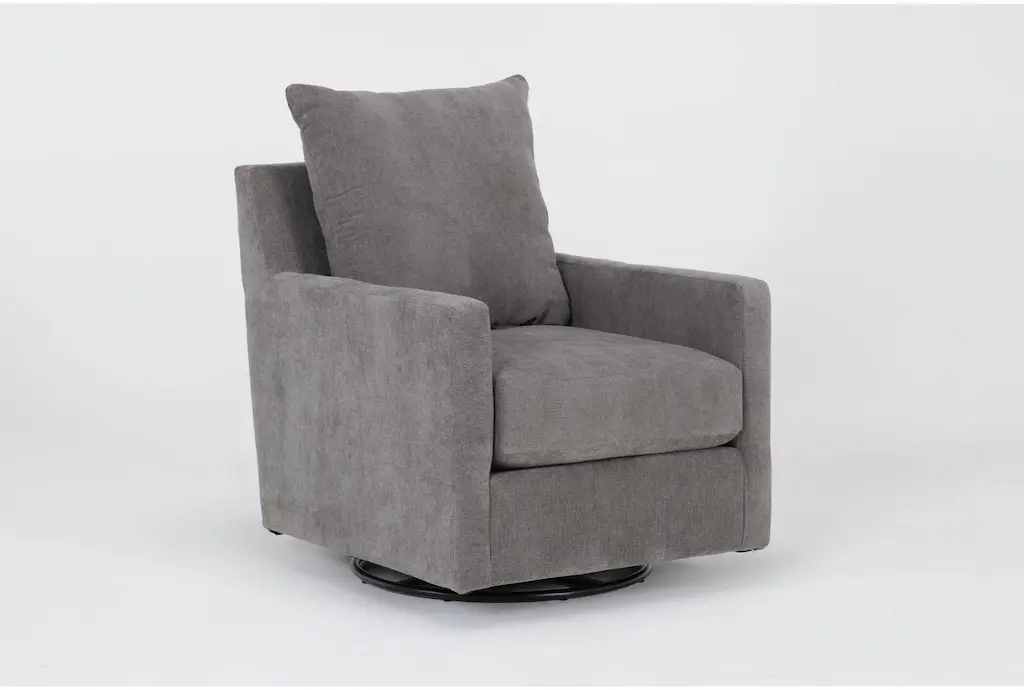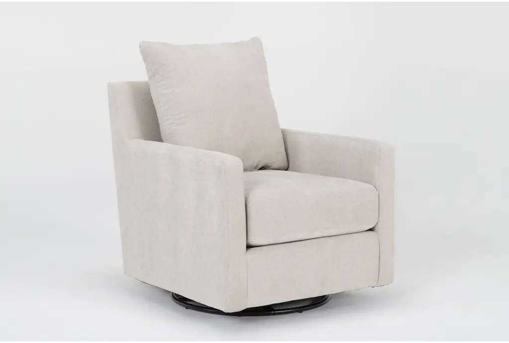 Experience the perfect blend of comfort and style with the Bonaterra Dove Grey Natural Fabric Swivel Glider Arm Chair. This casual armchair is designed to enhance your living room, bedroom, or dorm with its versatile and inviting presence. Upholstered in 100% polyester fabric, it features a swivel function and track arms for ultimate relaxation.