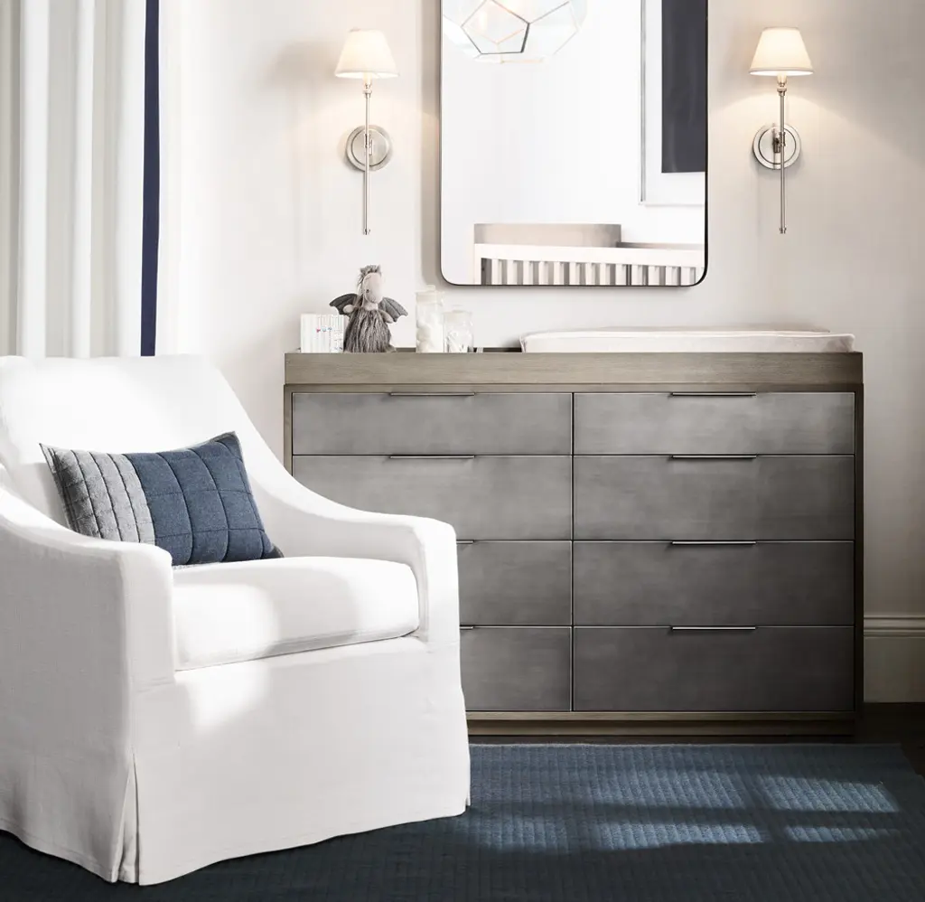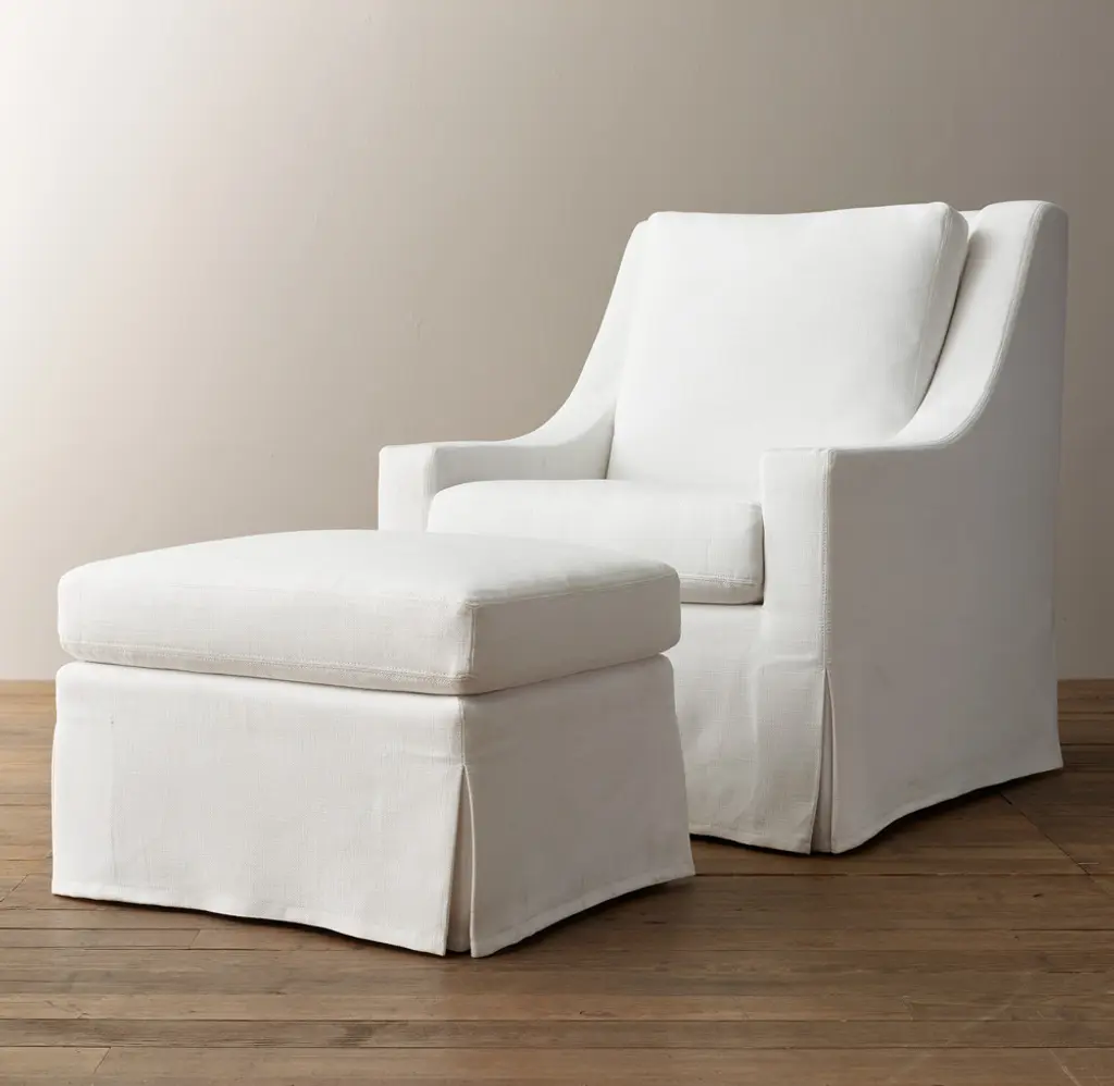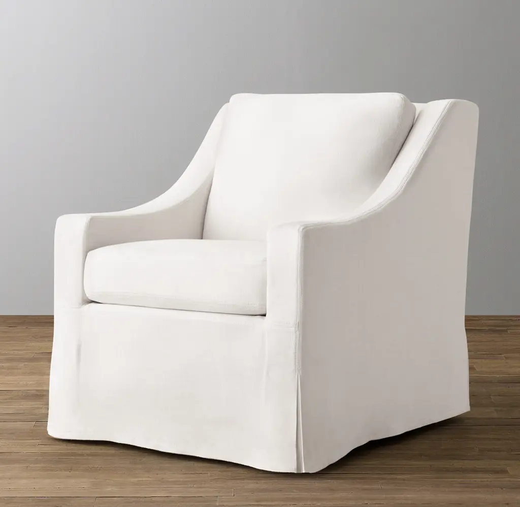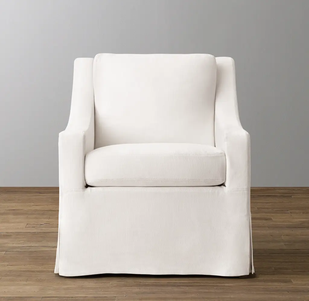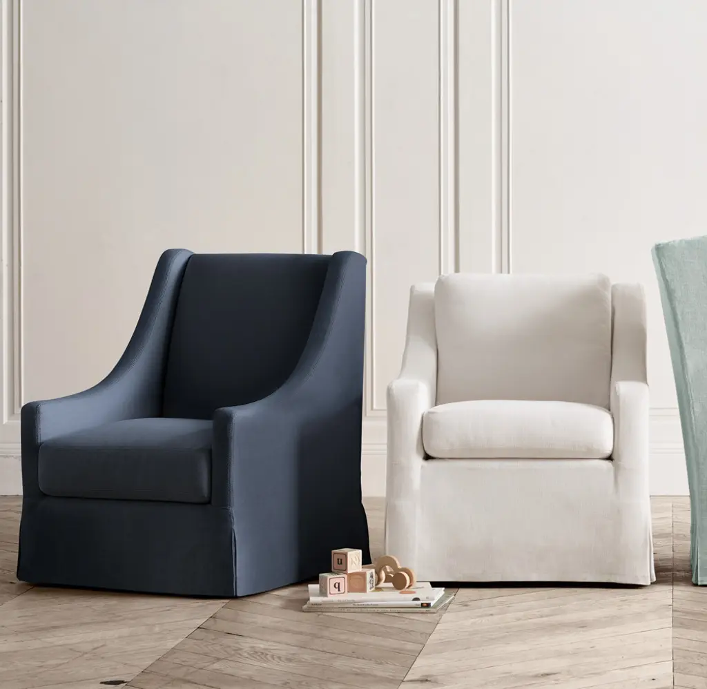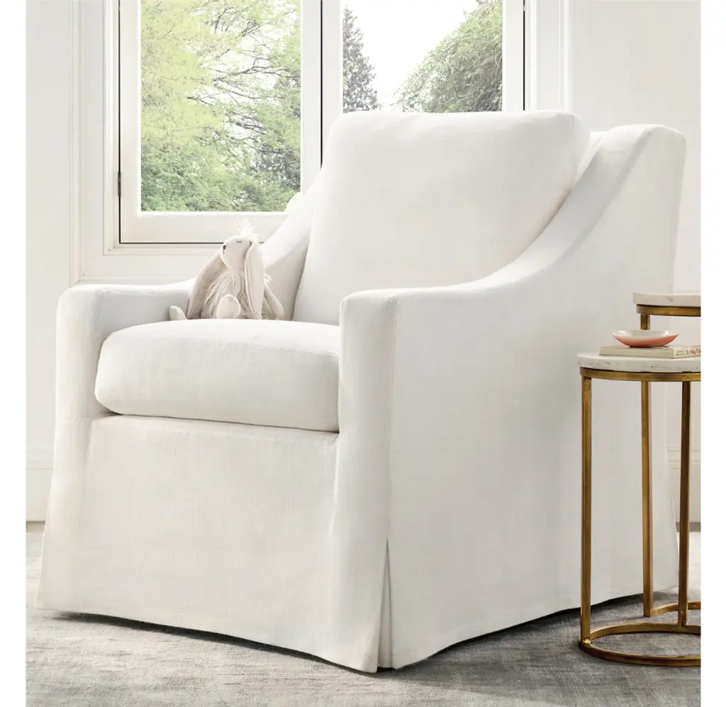 An enduring design that complements a range of interiors, our glider features gently sloped arms for support, densely padded cushions for comfort and ample space for bonding. A hardened steel mechanism ensures a full-motion swivel and glide.