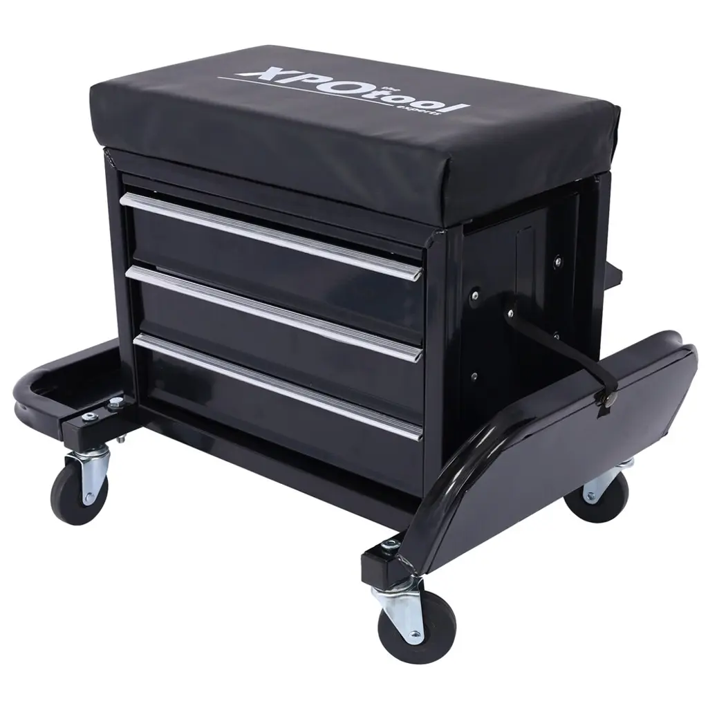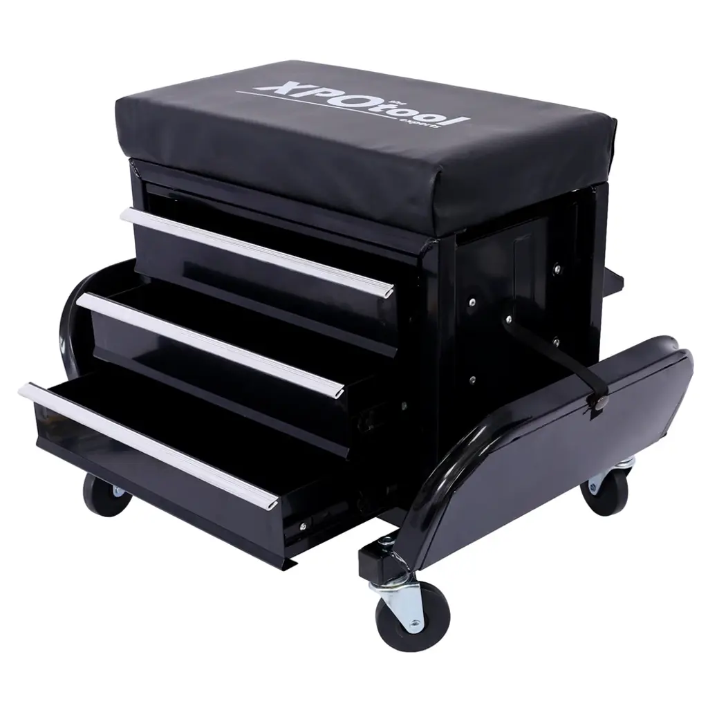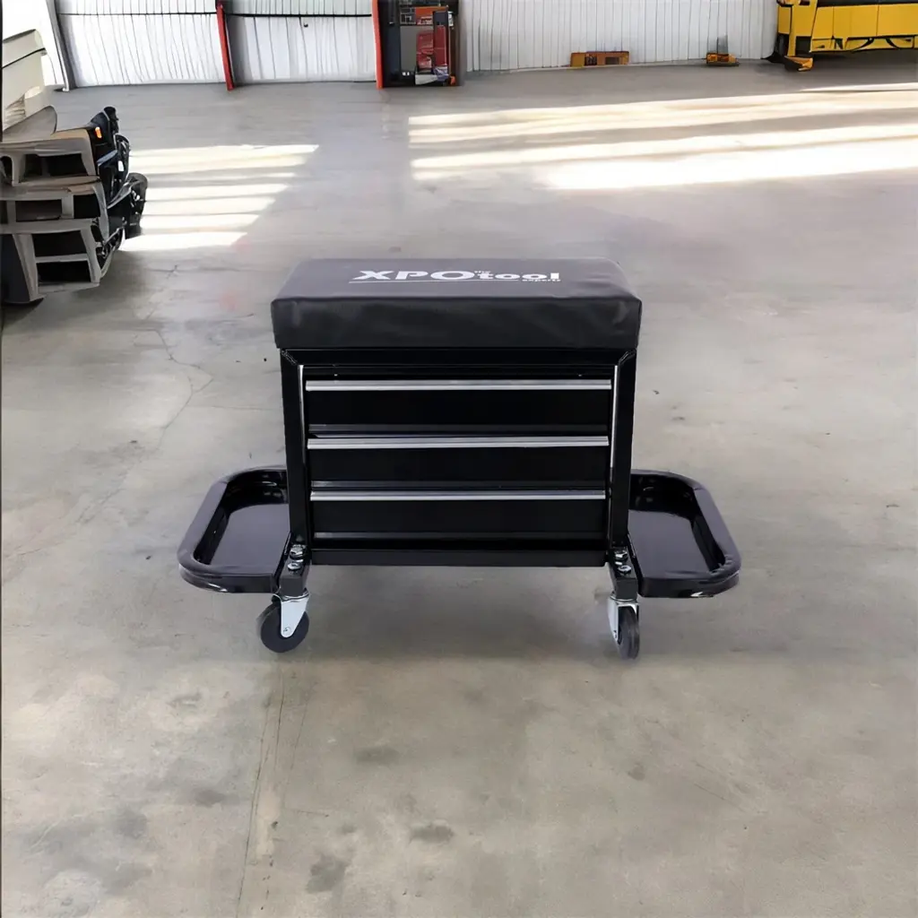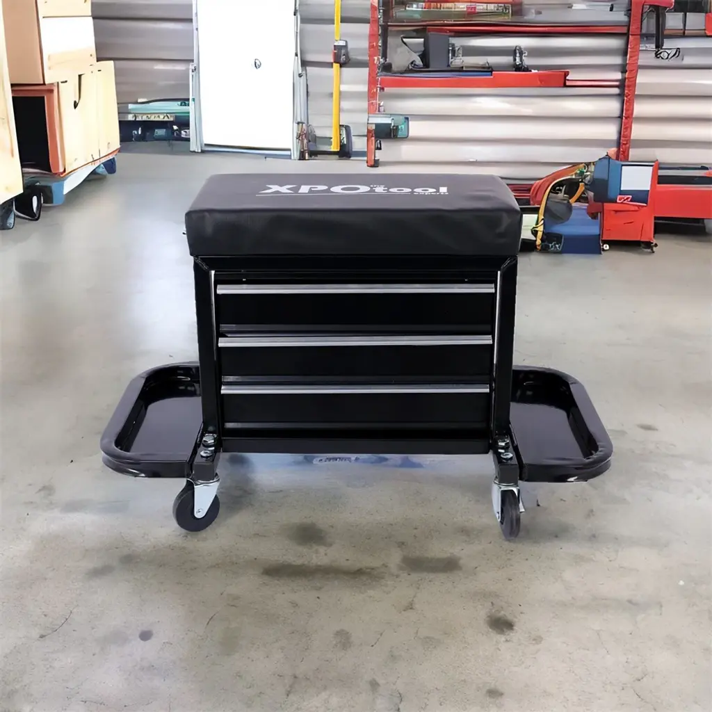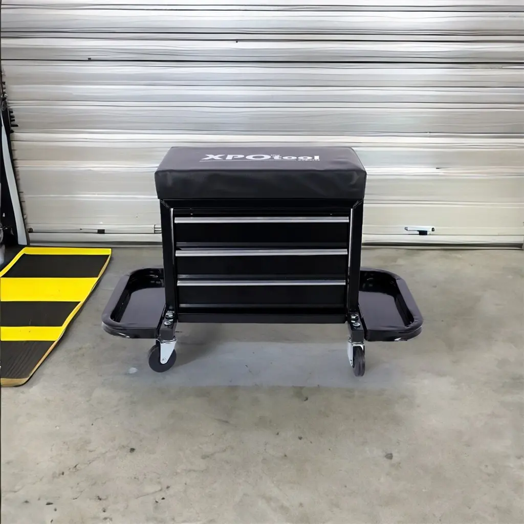 350-Pound Capacity Garage Glider Rolling Tool Chest Seat - Black