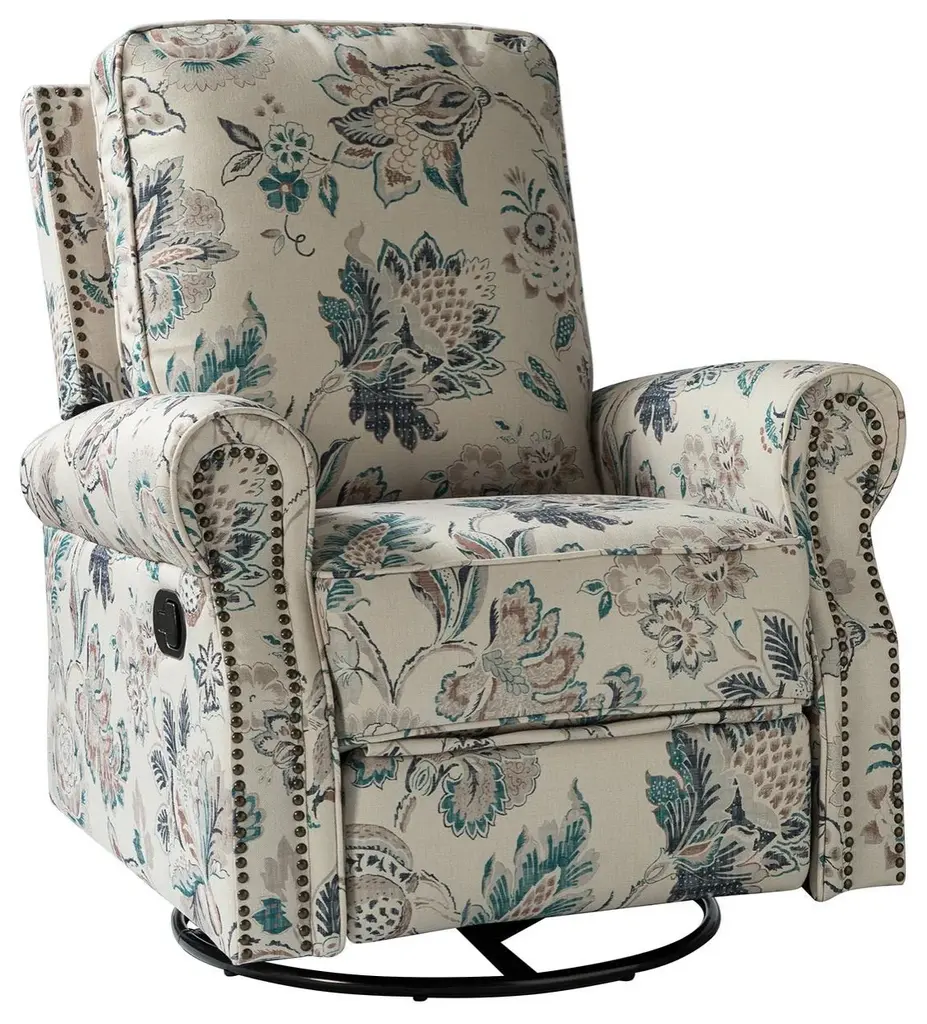 39" Manual Swivel Glider Recliner With Nailhead Trims, Teal