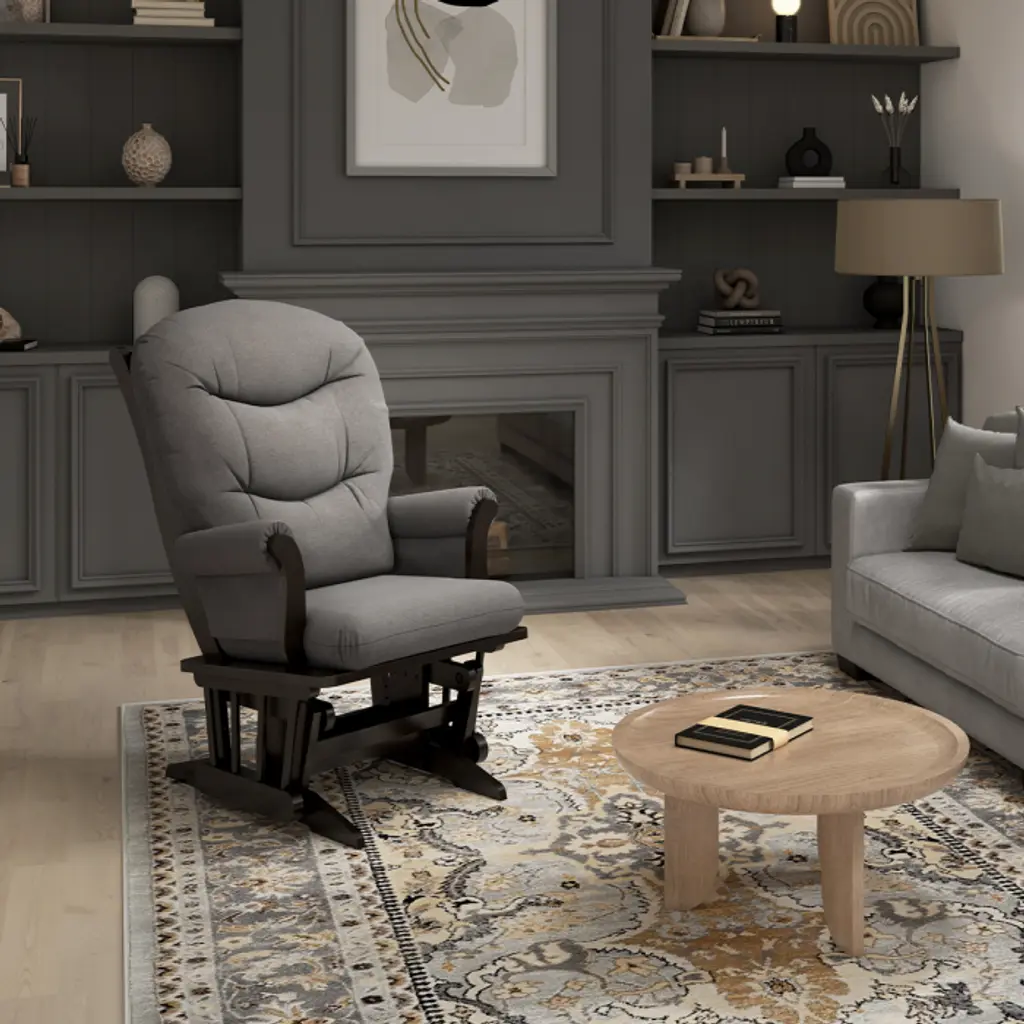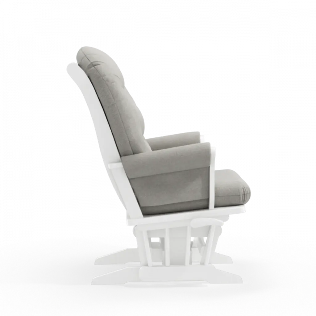 The Adèle Glider Multiposition Lock and recline with ottoman combo stands out with a design inspired by the curves and details of a contemporary sledge.