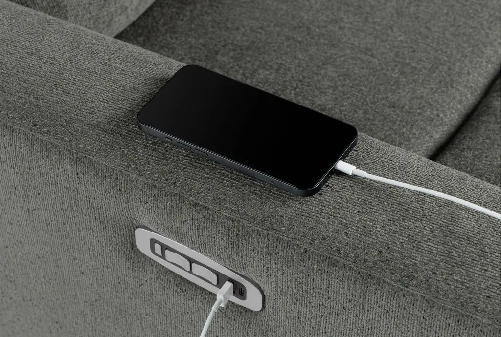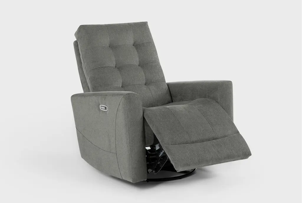 With multiple designs and colors to choose from, our Ansel reclining collection offers a variety of options for your lounging pleasure. The power swivel glider recliner with power headrest and USB boasts clean, modern lines with smooth track arms and grid tufting detail. A strong, sturdy frame is reinforced with wood, plywood and corner-blocking, while the seating promises exceptional support thanks to a foam core with innerspring coils and Dacron wrap. Soft and durable, the upholstery is tailored perfectly.