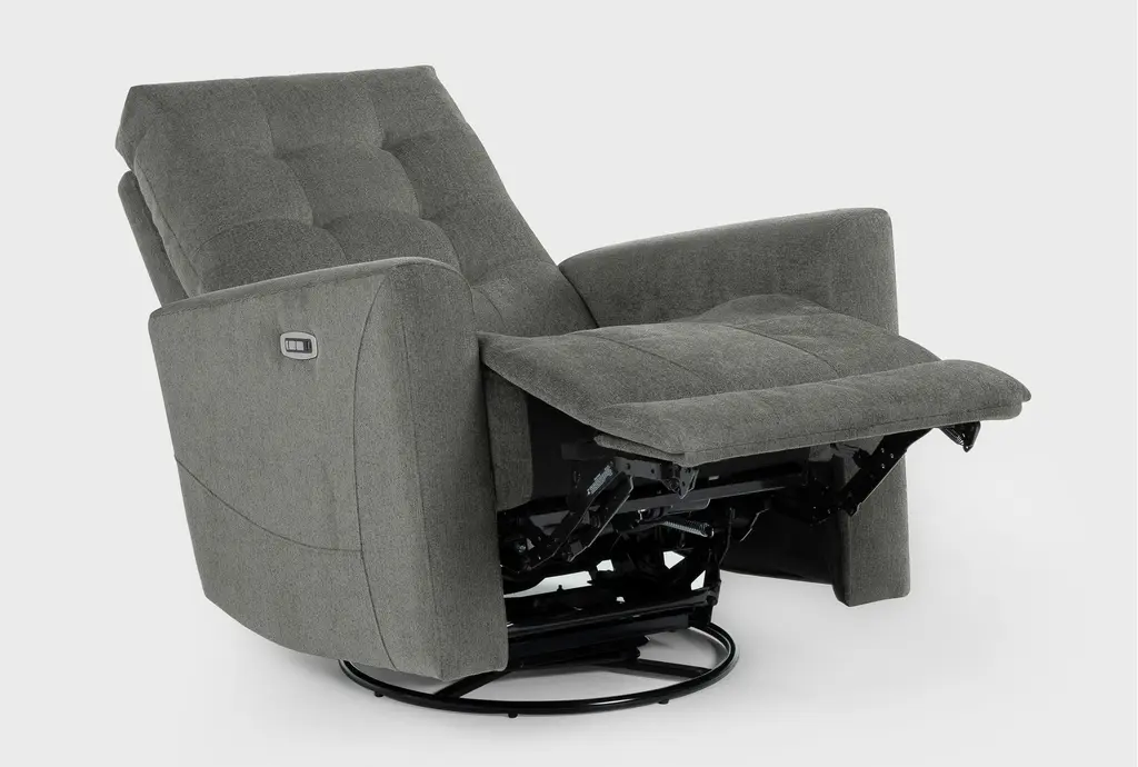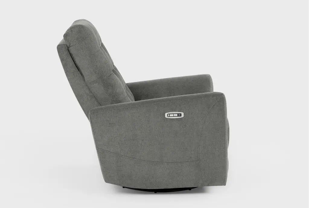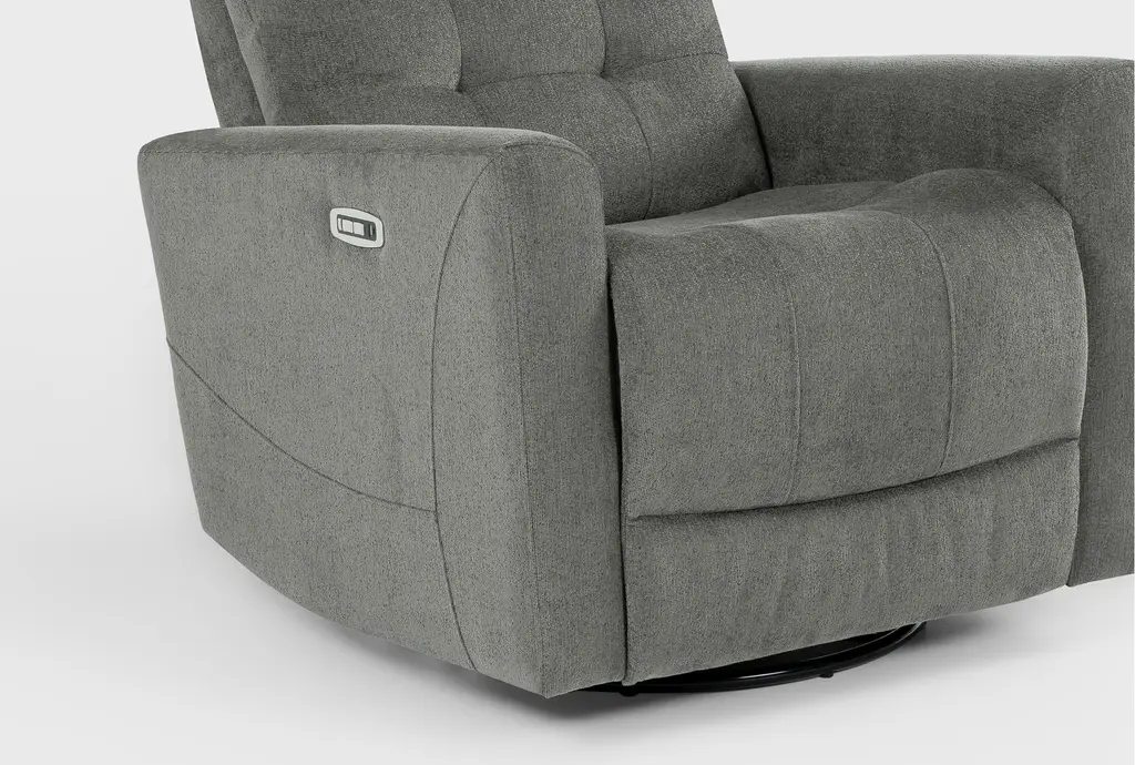 Ansel Grey Fabric 33" Power Swivel Glider Recliner With Power Headrest & Usb