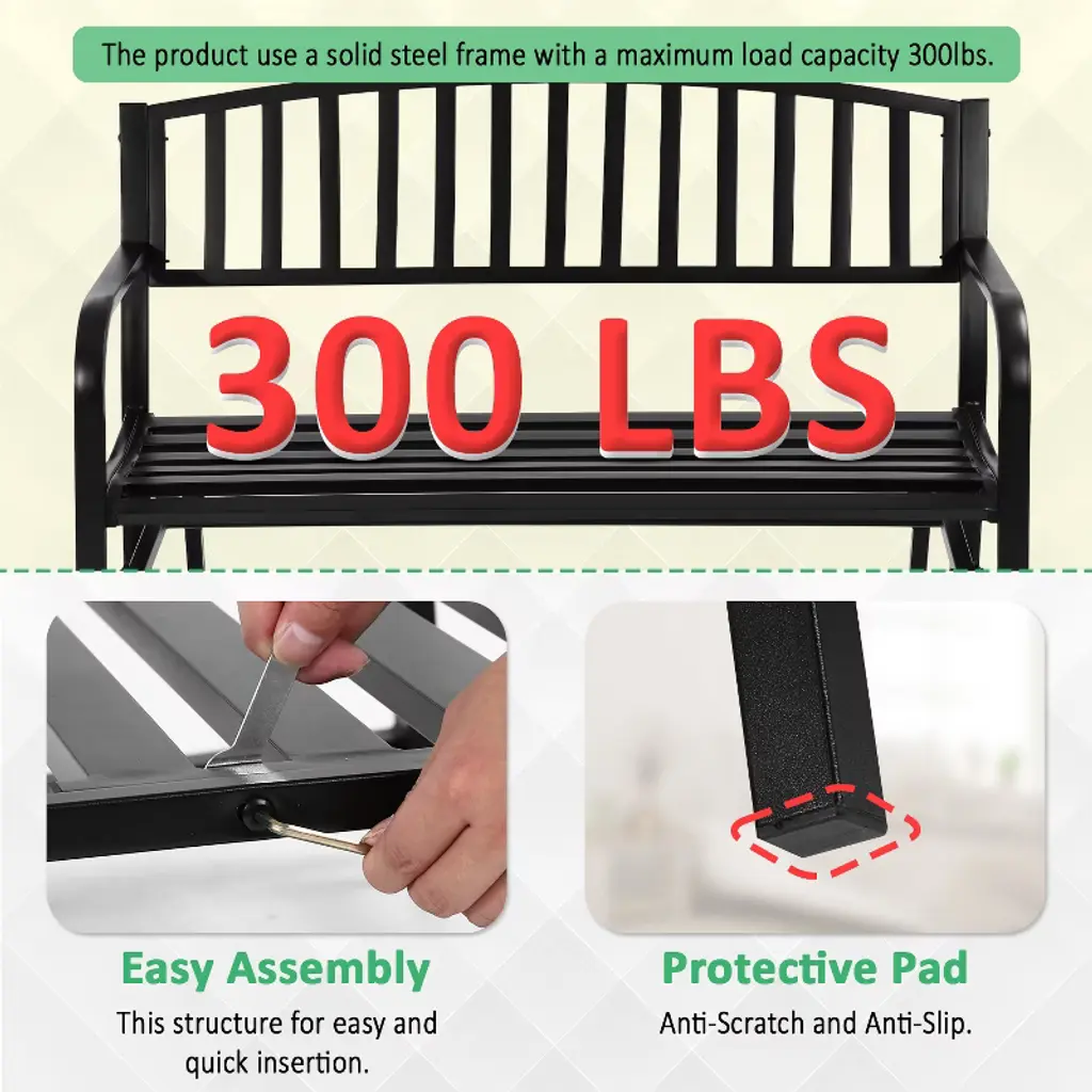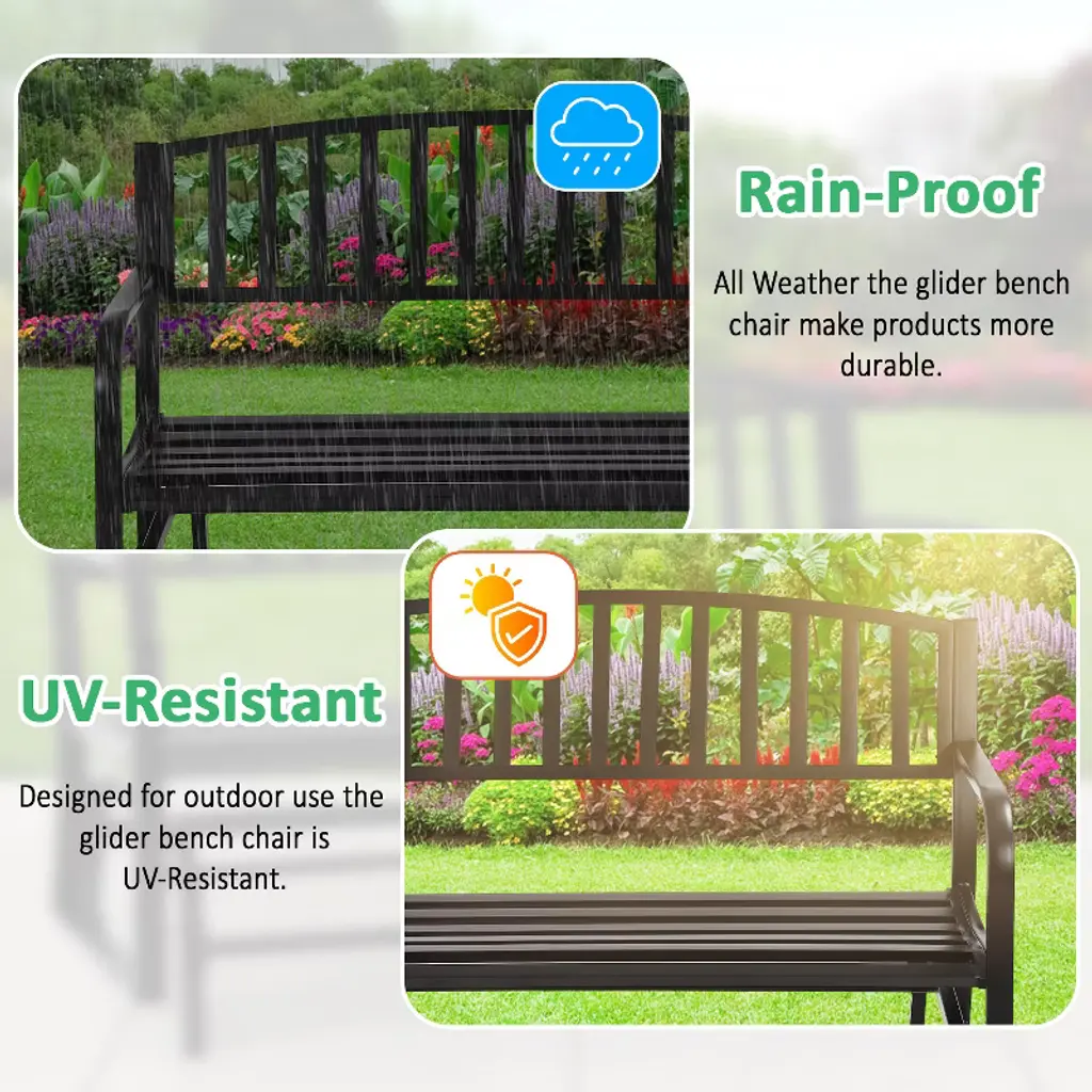 Bestmassage Garden Bench Patio Glider Bench With Smooth Metal Frame, Black